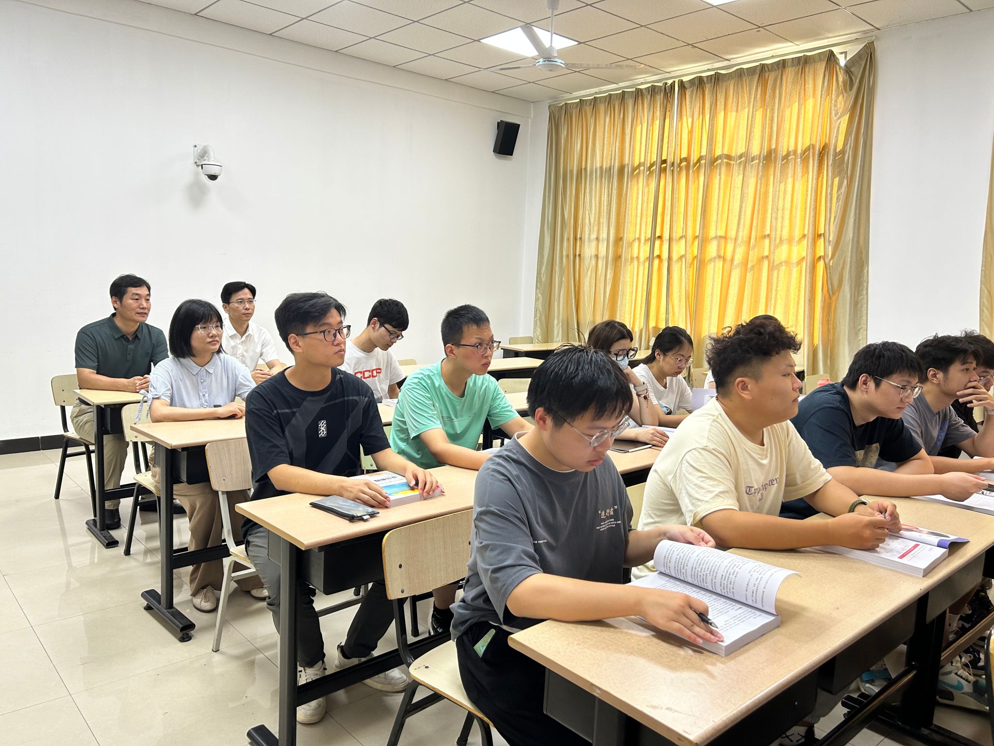课前,叶智锐深入教室与研究生进行交流,询问他们在学习和生活中遇到的困难以及学校需要改善的方面,鼓励大家主动学习、刻苦钻研、打牢基础,提高科研能力,做好科研规划,提升沟通技巧,做好人生规划。查课过程中,叶智锐认真听取了任课教师的授课内容,查看了研究生的课堂表现。