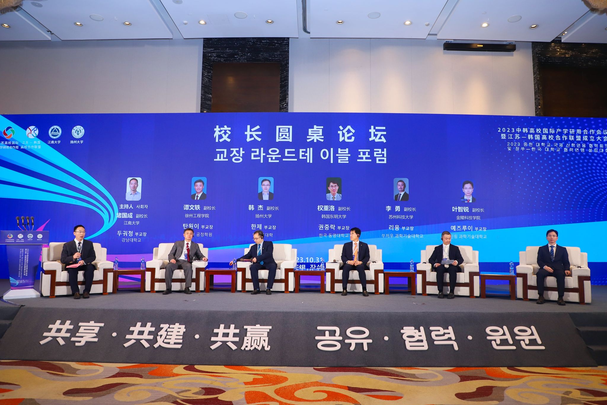 10月31日上午,由江苏省教育厅指导,江南大学、扬州大学共同主办的2023中韩高校国际产学研用合作会议暨江苏-韩国高校合作联盟成立大会在无锡召开。江苏省教育厅对外合作与交流处处长施蕴玉、大韩民国驻上海总领事馆教育领事赵洪善、大韩民国驻上海总领事馆教育首席专员全天日、无锡市人民政府外事办公室副主任咸贞玉、无锡韩国商会会长柳荣泫,联盟主席单位江南大学校长陈卫,联盟秘书处单位扬州大学副校长韩杰,以及联盟成员高校的中方、韩方校领导等出席大会。beat365副校长叶智锐受邀出席会议并在校长圆桌论坛环节作交流发言。