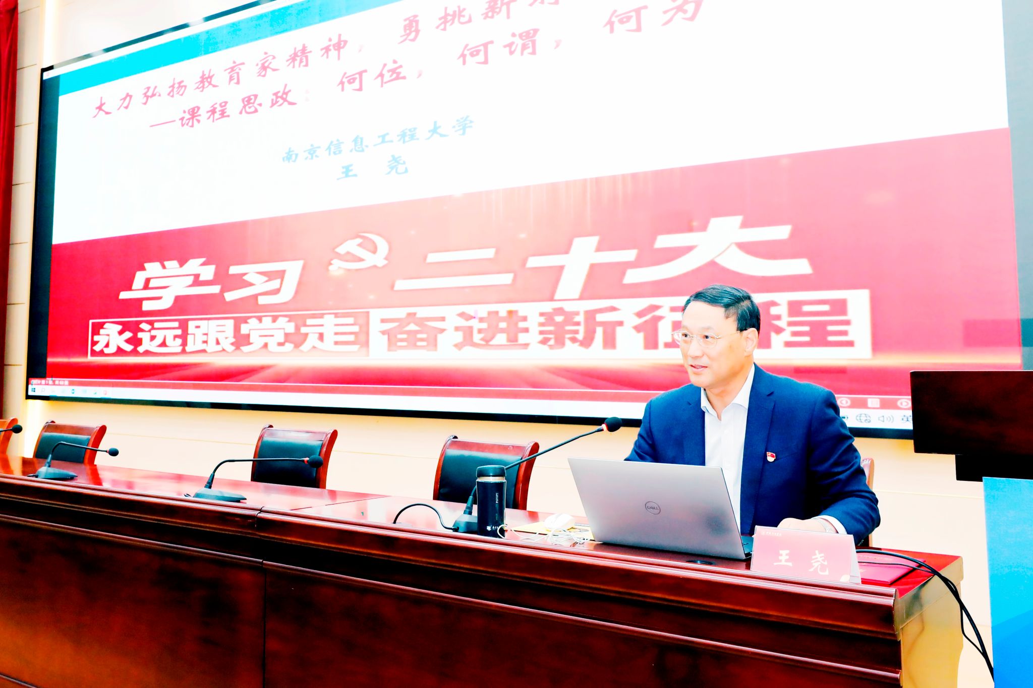 王尧教授以《课程思政—何位,何谓,何为》为题作学术报告。报告深入贯彻习近平总书记强调的“其他各门课都要守好一段渠、种好责任田,使各类课程与思想政治理论课同向同行,形成协同效应”和“教师不能只做传授书本知识的教书匠,而要成为塑造学生品格、品行、品味的‘大先生’”等精神,特别是针对课程思政建设中教师们普遍感到困惑的问题,对课程思政概念的内涵、外延和重要意义做了深入的阐释。报告分析了“课程育人之缺位”现象,强调做好课程思政要提升对教学学术性的认识,抓住教师要有“思想”这个关键点,结合不同的课程,深挖思政元素,恰当融入教学,将思政元素与知识内容有效融合。王尧教授结合丰富的教学实践经验,通过生动具体的事例将课程思政在价值塑造、知识传授、能力培养等方面如何有效发挥协同育人作用,提出了宝贵的意见建议,给予与会教师有效的指导。