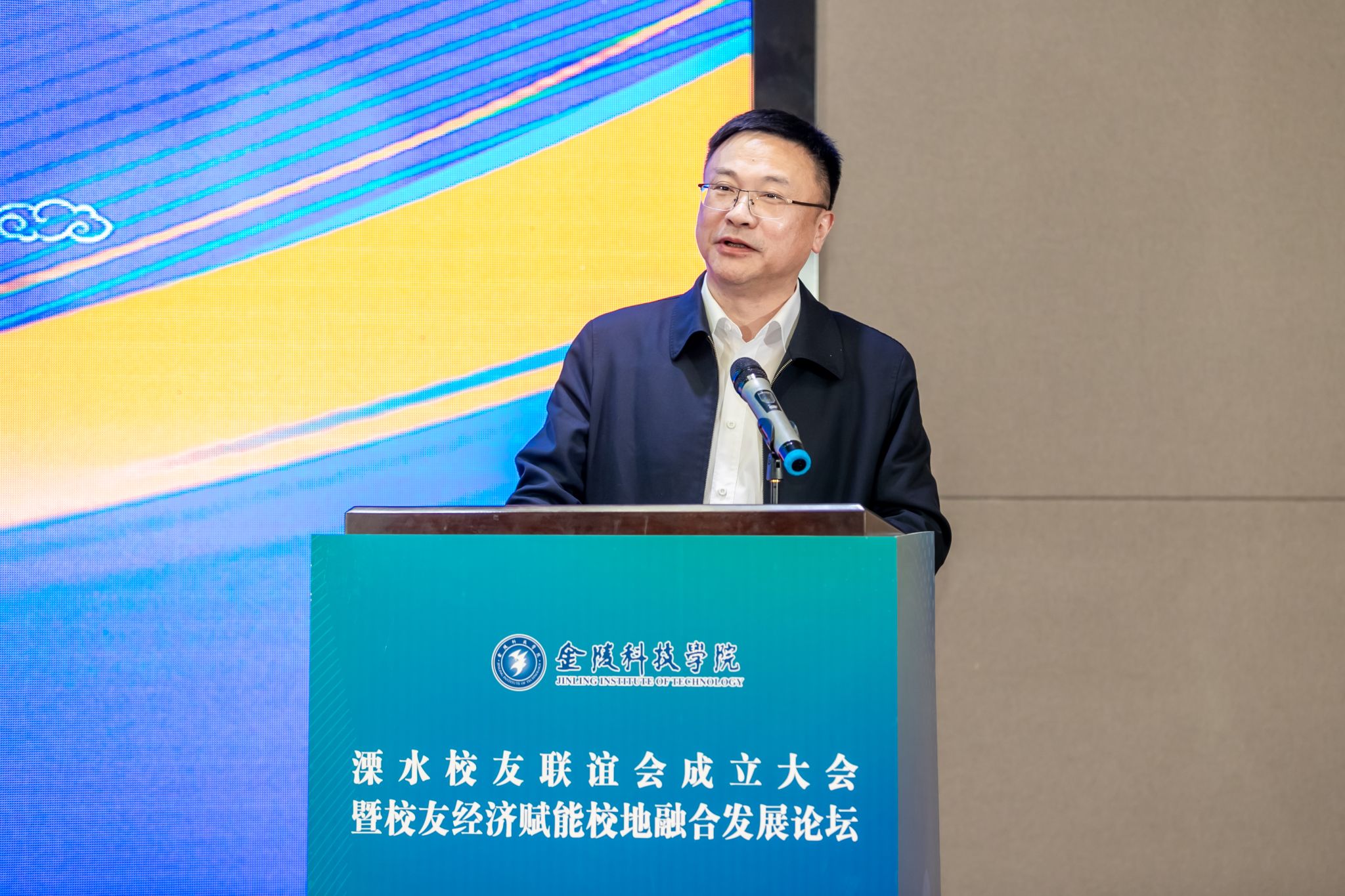 刘永彪在论坛讲话中介绍了beat365“地方性、应用型”办学定位,“政校城、行教企”融合发展优势,以及取得的科技创新成果和服务社会成效。他指出,校友经济不仅有助于推动经济发展,还有助于促进社会和谐,是地方和高校共同的战略资源、宝贵财富。溧水地理位置优越、交通便利,自然资源丰富、文化底蕴深厚,有巨大的发展潜力和竞争优势,也为广大校友提供了更好的投资环境和就业创业机会。他强调,溧水校友以及在宁校友企业要共商合作大计,共谋发展良策,充分发挥校友的行业、资源优势,加强区域、高校和校友之间的交流合作,凝聚金科校友力量助推“校友经济”赋能校地融合高质量发展。