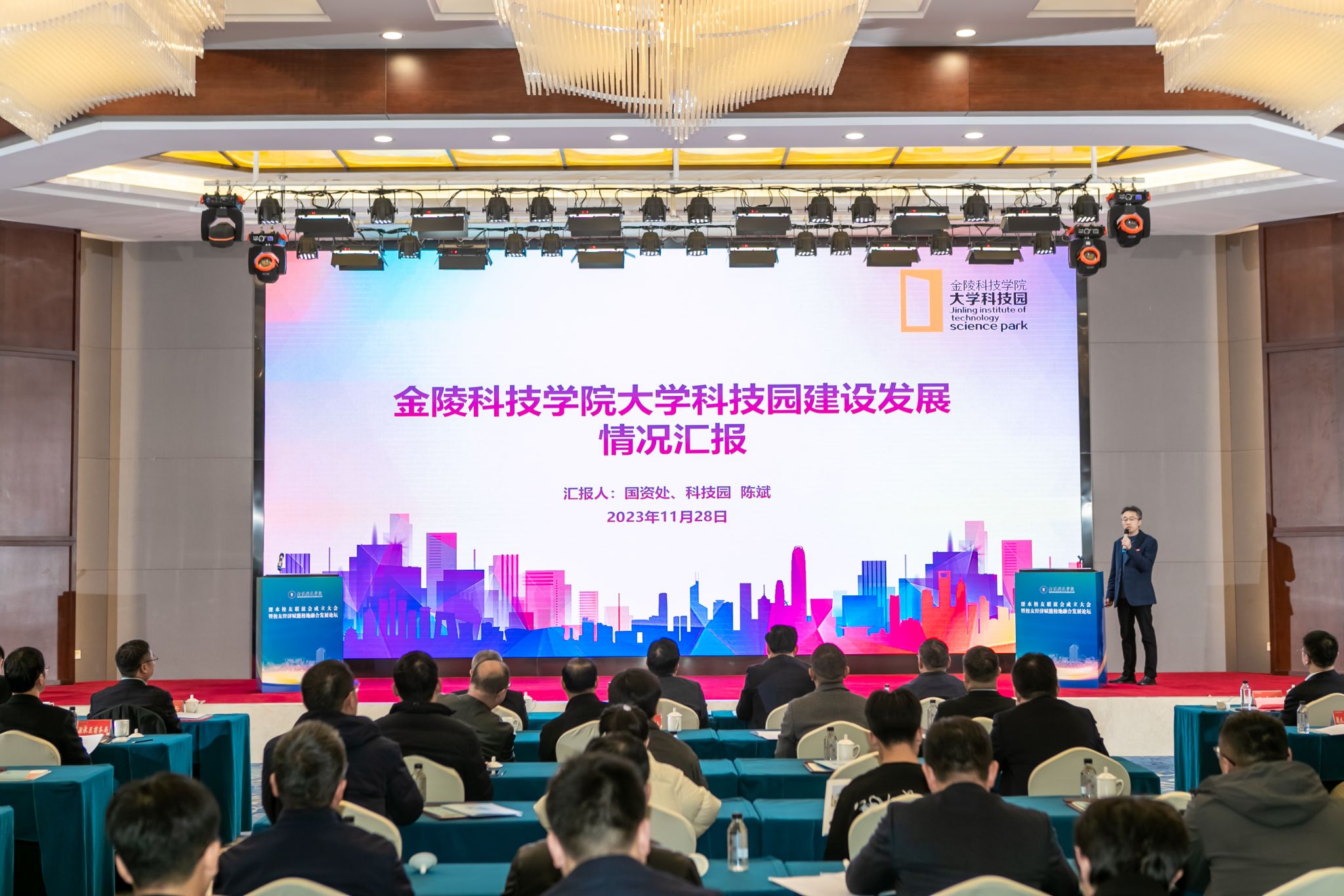 校友经济赋能校地融合发展论坛活动中,与会人员观看了溧水区宣传片,溧水区投资促进局和经济开发区相关负责人介绍了溧水区招商引资情况,beat365科技处处长刘磊、科技园管理办公室主任陈斌和招生就业处处长闵光琛分别就学校科技创新情况、大学科技园运营情况和招生就业创业情况进行了介绍。
