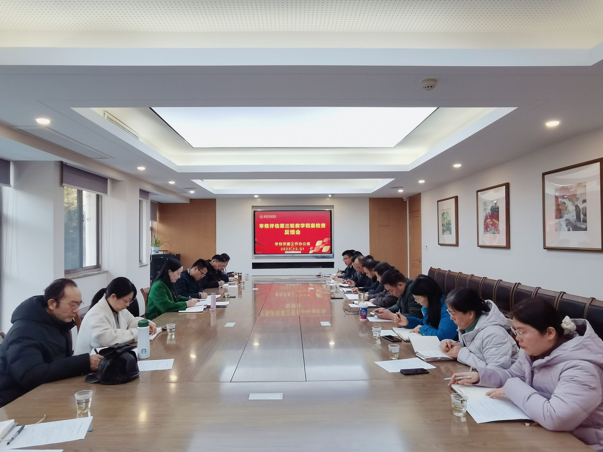12月21日下午,评建工作办公室在行政楼240会议室召开审核评估第三轮教学档案专项检查反馈会。教务处、教学质量评估中心相关负责人,各二级学院分管教学工作副院长参加反馈会。副校长顾晓燕主持会议并讲话。