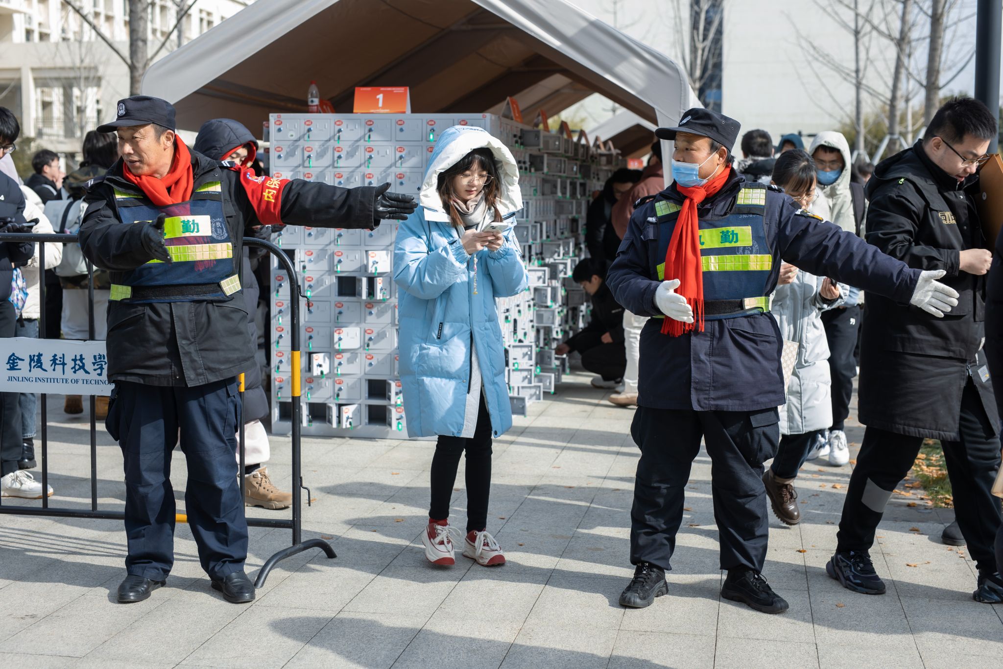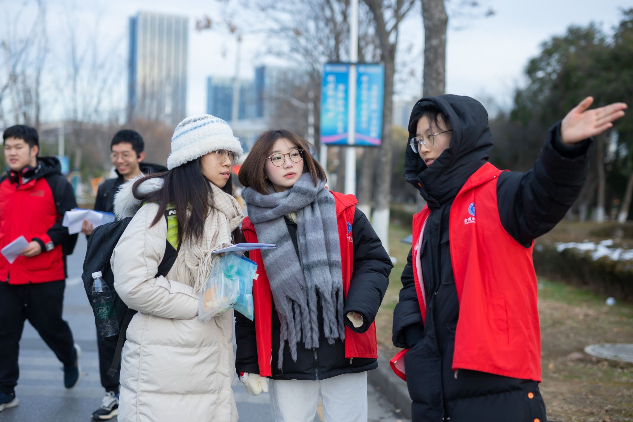 考试前夕,校党委书记、校长带队全流程检查组考准备情况,强化实战演练,并着重强调了“三无三稳三确保”的工作要求。考试期间,校领导带领有关部门负责人对考务与考试的全程进行了巡视巡检,对后勤保障、安全保卫等关键环节进行了现场指导,提出改进意见,确保考场环境安全、安静、舒适。为进一步优化考生服务,beat365提前通过微信公众号、学校官网发布了温馨提示,就考生关注的问题进行了详细解答,并在校门口放置了考场分布图和路标指引牌,为考生提供了便利。同时,设置了问询处、临时医务室,并为考生提供了红糖姜茶等防寒热饮,安排了学生志愿者进行现场指引和服务。