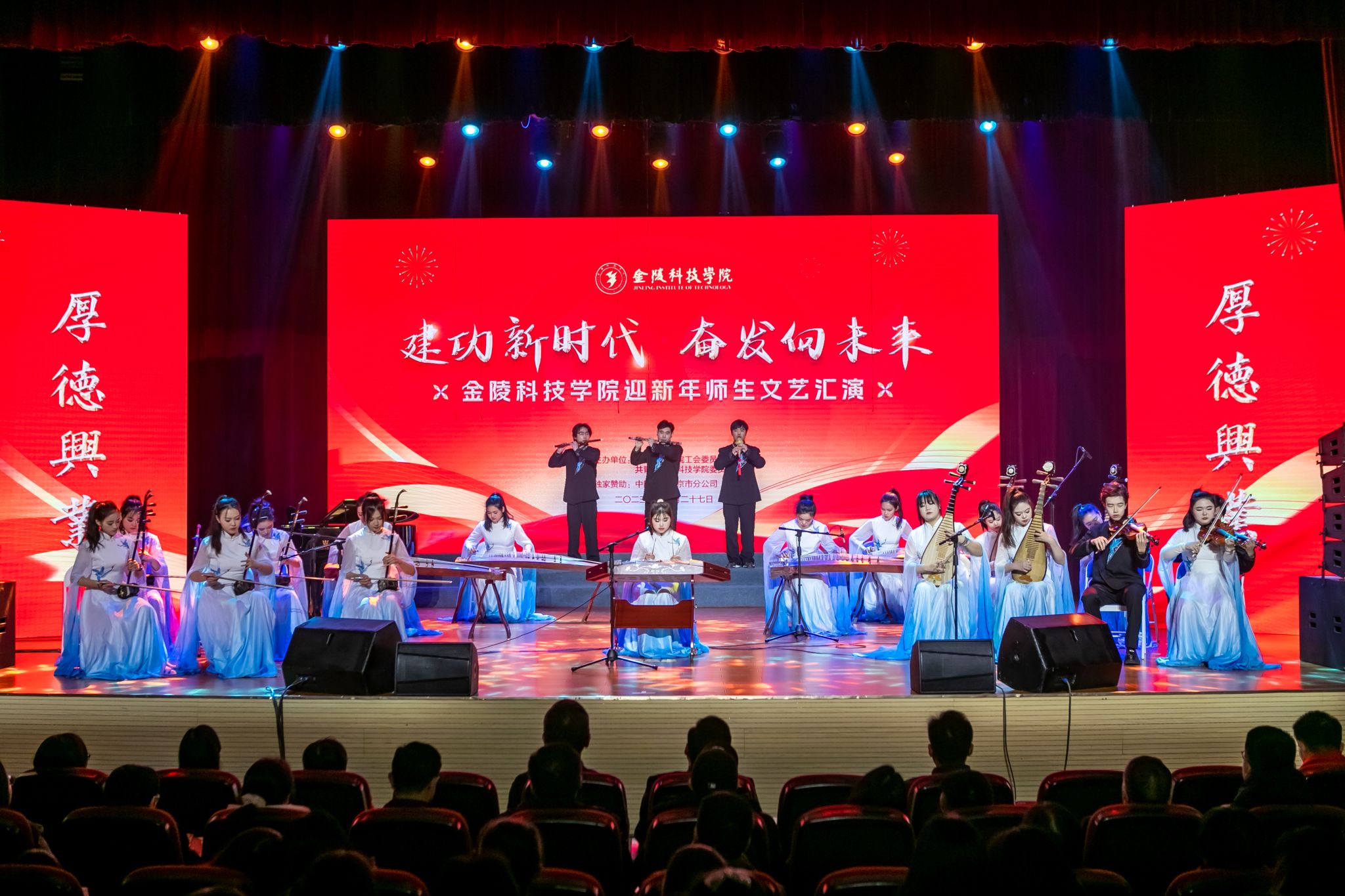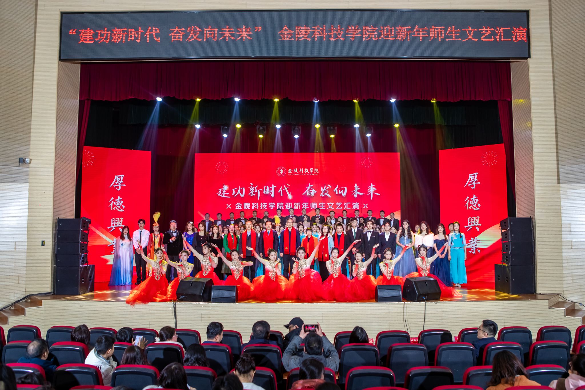 演出高潮迭起,现场气氛热烈,精彩的视听盛宴展现了金科师生昂扬向上的精神风貌。建功新时代,奋发向未来,全体金科人将践行初心使命,赓续奋进力量,谱写新时代学校高质量发展的壮美华章。