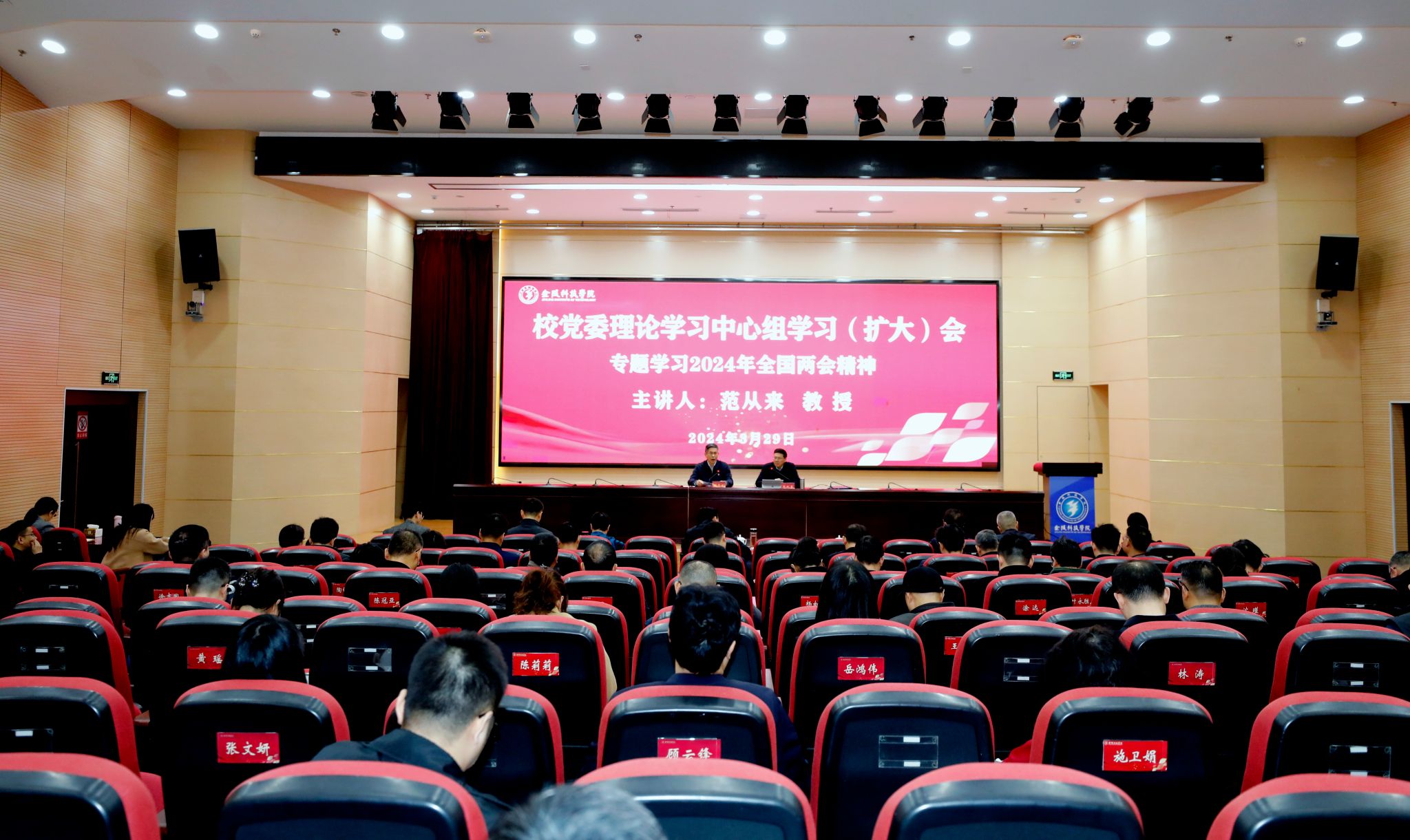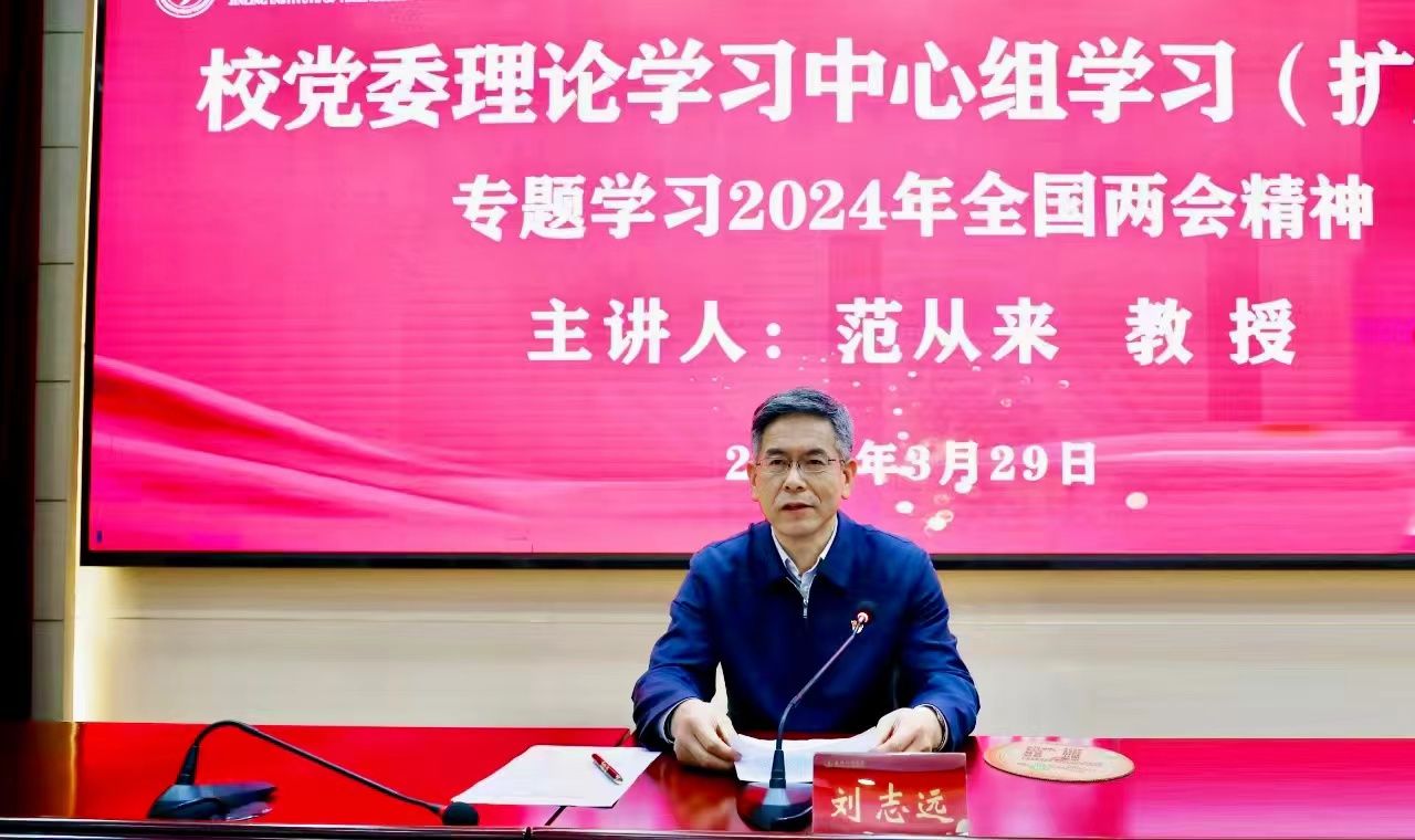 3月29日上午,beat365在科技楼报告厅召开校党委理论学习中心组学习(扩大)会,专题学习2024年全国两会精神。南京大学教授、博士生导师范从来教授应邀作“新质生产力”专题辅导报告。全校处级以上领导干部参加学习会,学习会由校党委书记刘志远主持。