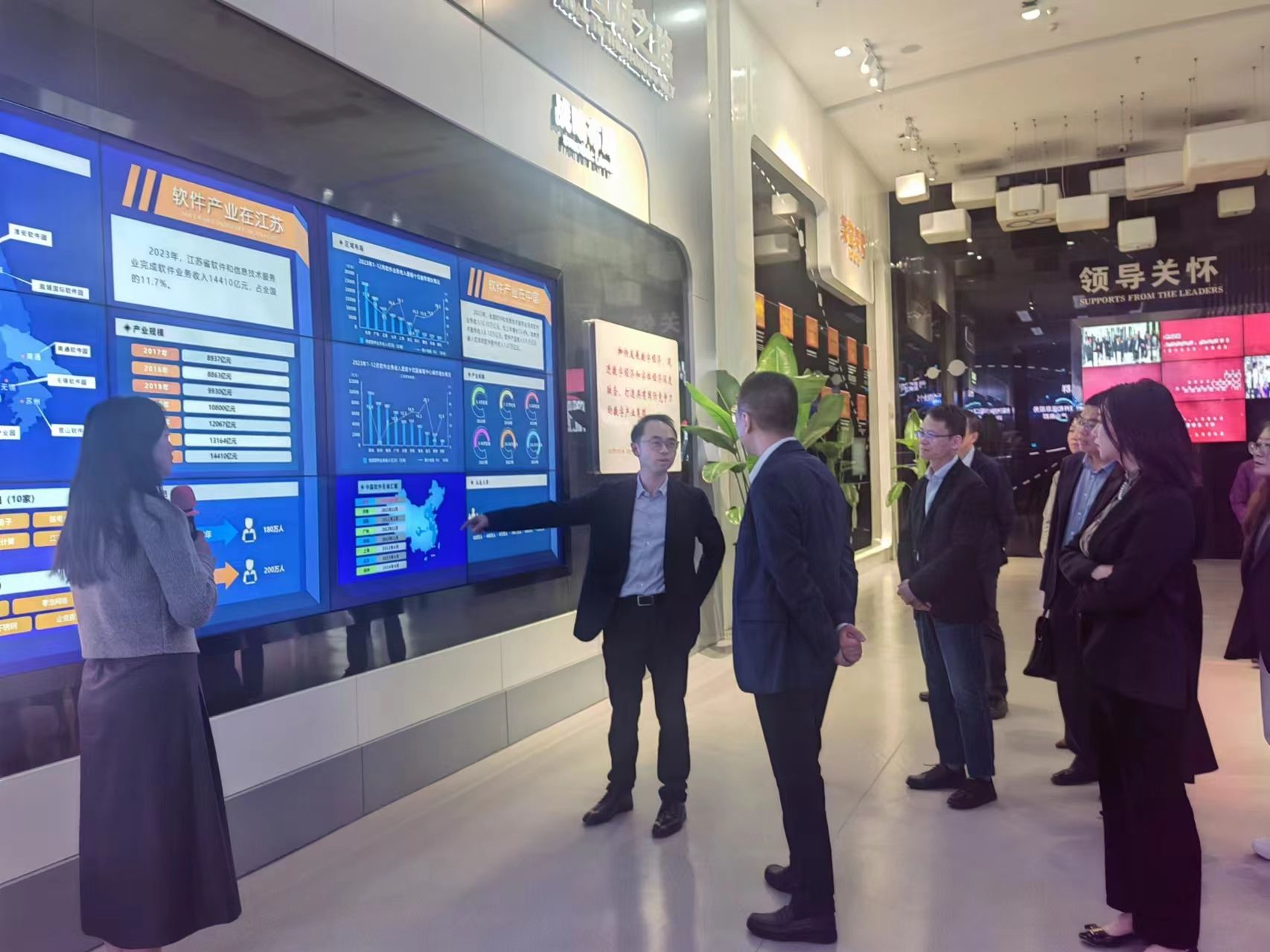 期间,单晓峰一行参观了南京软件产业博览馆,深入了解南京软件产业发展历程及软件谷中的不同产业集群和代表性企业;参观了嘉环科技总部,了解公司发展历程、产品研发及人才需求情况。