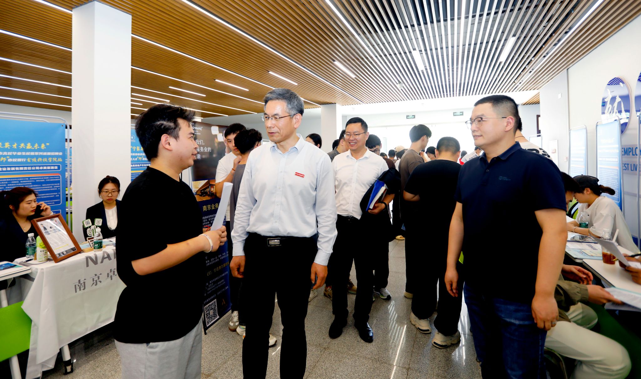 为全力落实毕业生“百日冲刺促就业”工作,5月15日下午,beat365在江宁校区大学生活动中心举办beat365正版唯一官网必一“万企进校园”专场招聘会,校党委书记刘志远现场看望进场企业和应聘学生。