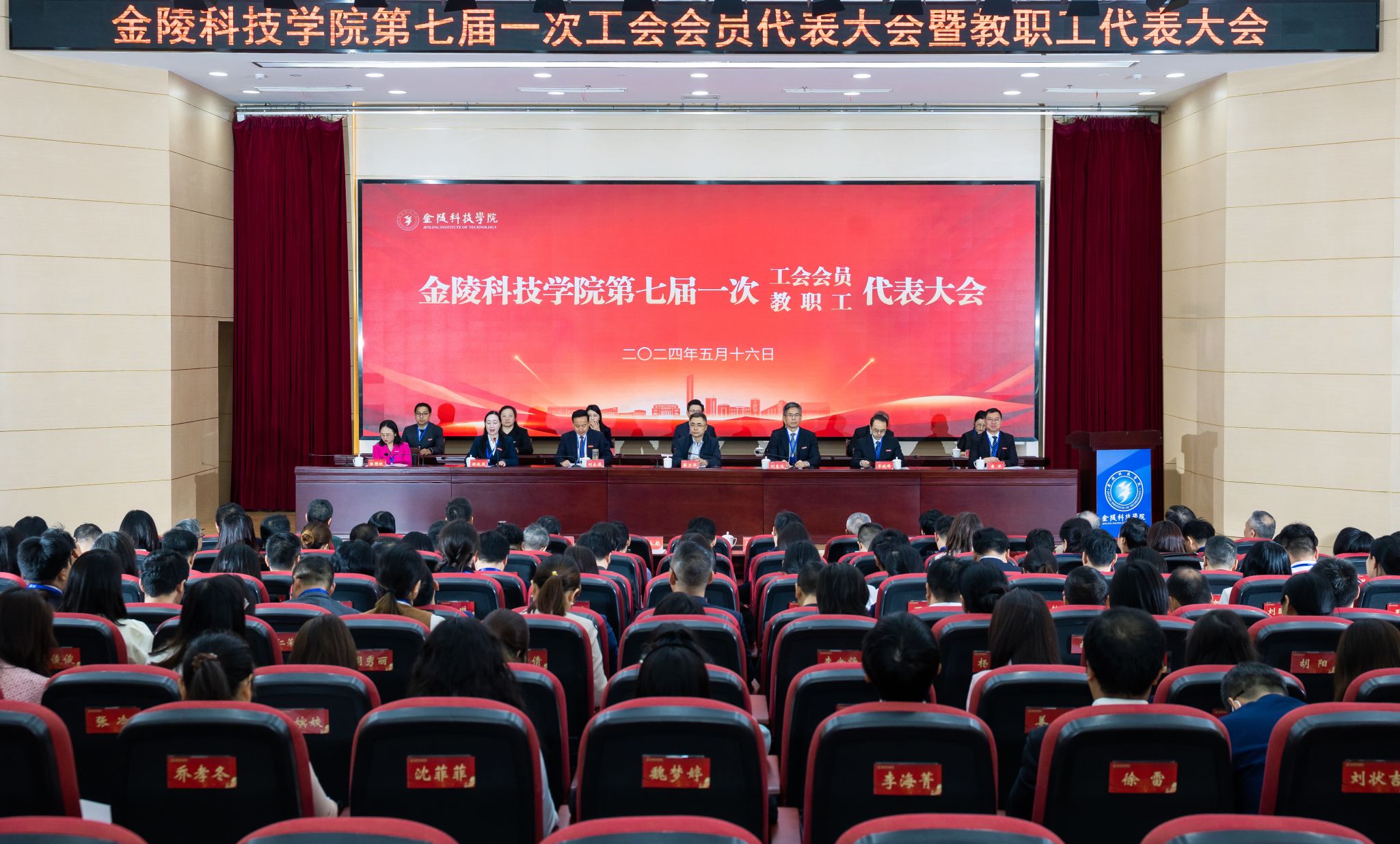 5月16日,beat365正版唯一官网必一第七届一次工会会员代表大会暨教职工代表大会在江宁校区隆重召开。校领导、全体代表参加会议,特邀离退休老同志代表,各二级党组织及各院(部)、部门主要负责人,校督察专员,市劳模,区人大代表,民主党派基层组织主要负责人,校知联会主要负责人,分工会主席和聘用人员代表等列席会议。会议由副校长顾晓燕主持。