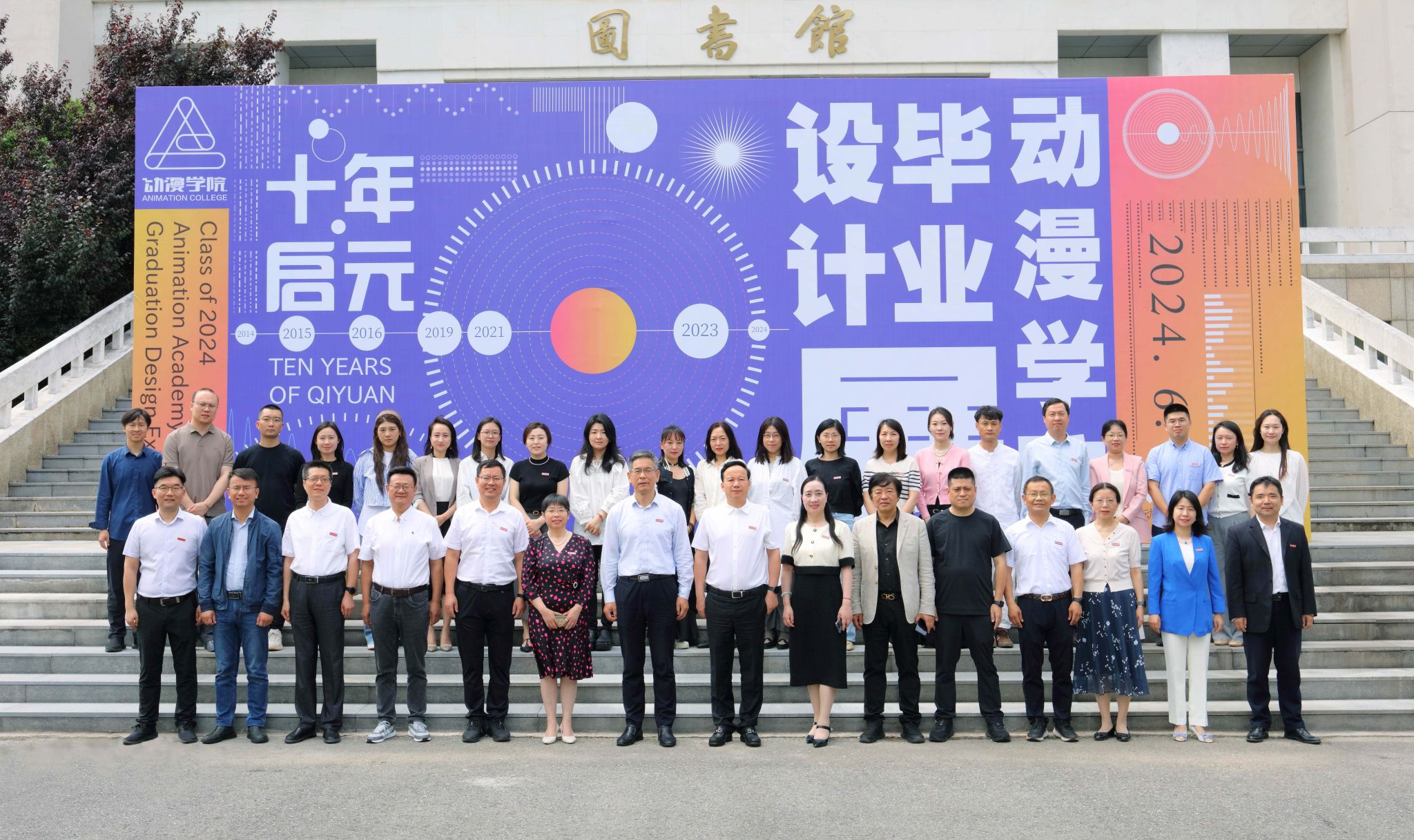 6月6日,动漫学院2024届毕业设计展在南京动漫图书馆开幕,校党委书记刘志远,校长刘永彪,副校长张燕、顾晓燕,纪委书记王靖华,以及兄弟院校相关学院领导、行业协会嘉宾、校企合作企业嘉宾、校友嘉宾、学校相关部门负责人和动漫学院师生代表参加了开幕式。