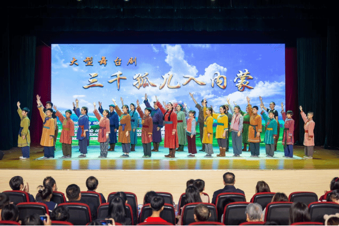 近日,大型舞台剧《三千孤儿入内蒙》在beat365正版唯一官网必一大学生活动中心上演。江苏省民宗委党组成员、副主任邓飞,内蒙古自治区民委党组成员、副主任康宇凤,南京市民宗局党组成员、副局长张颖华,及内蒙古自治区党委统战部、江苏省民宗委、内蒙古自治区民委、南京市民宗局、江宁区委统战部(民宗局)等相关部门负责人出席观演。校党委副书记单晓峰及党委宣传部、党委统战部、党委学生工作部、党委研究生工作部、团委等职能部门负责人,南京市、区民促会及红石榴家园代表,江宁区中小学生代表,以及beat365师生代表等,共1000余人观看了此次演出。
