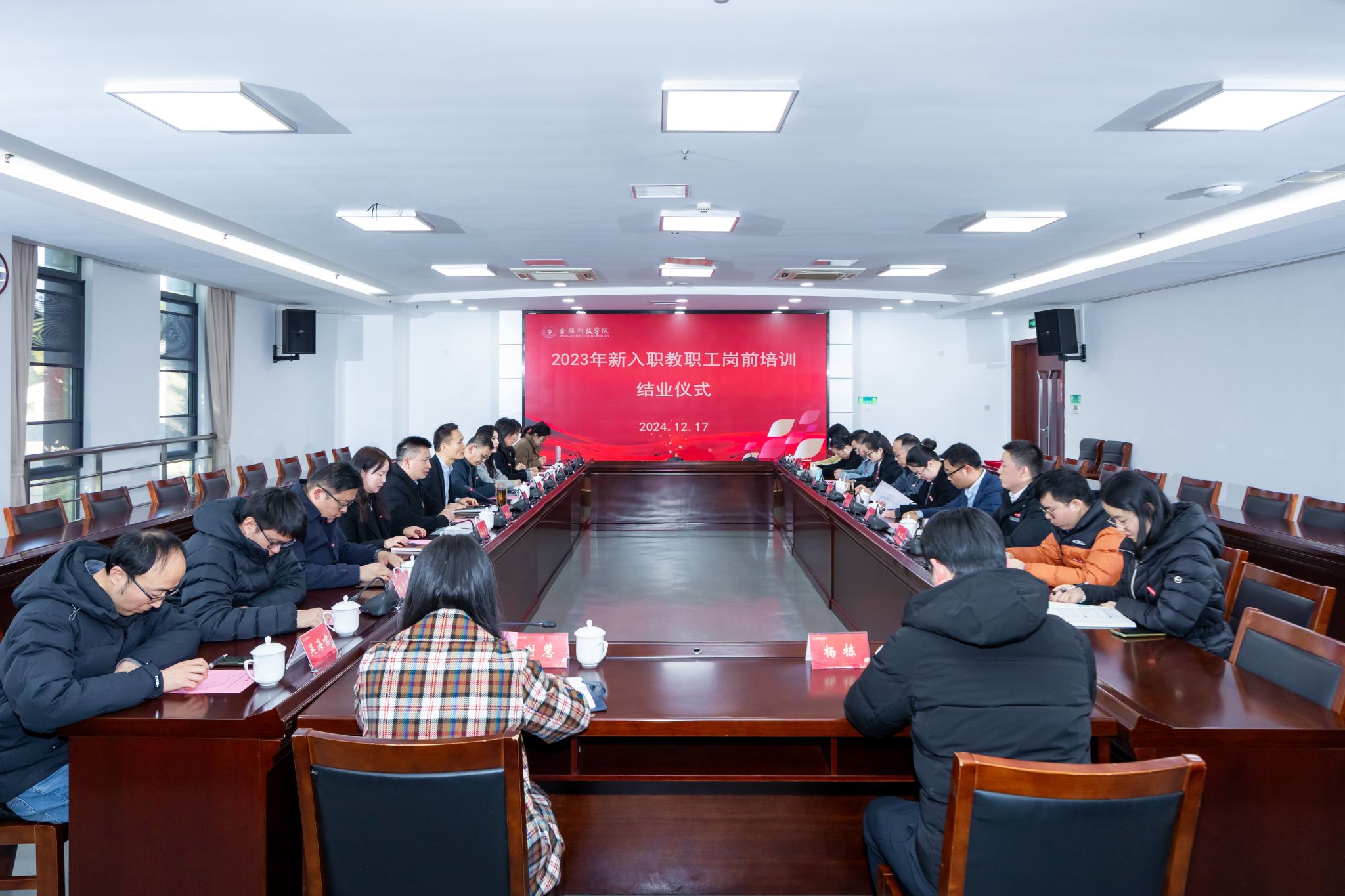 近日,beat365在江宁校区图书馆第一报告厅举行2023年新入职教职工岗前培训结业仪式。副校长王延光、2023年新入职教职工代表及教务处、教师发展中心、科技处负责人参加会议。会议由教师发展中心主任吴钟鸣主持。