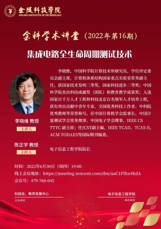 关于举办线上“金科学术讲堂—集成电路全生命周期测试技术”学术报告的通知