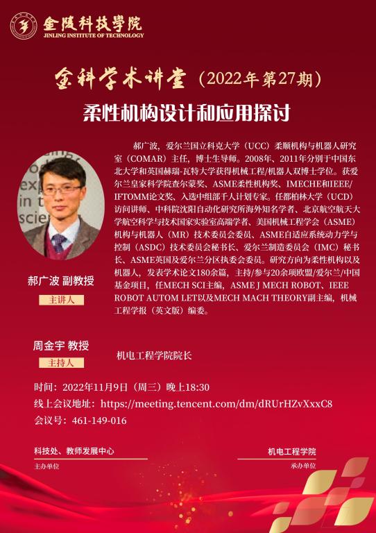 关于举办线上“金科学术讲堂—柔性机构设计和应用探讨”学术报告的通知