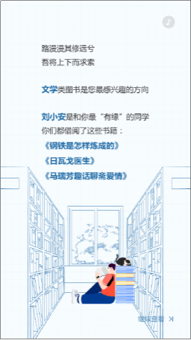在毕业季来临之际,图书馆为每个毕业生准备了一份数据报告,提供他们在校期间图书馆里的学习轨迹、阅读清单,为大学的求学时光做个记录。也祝愿毕业生们不管是继续求学深造还是步入社会,都能脚步铿锵,前程顺利。