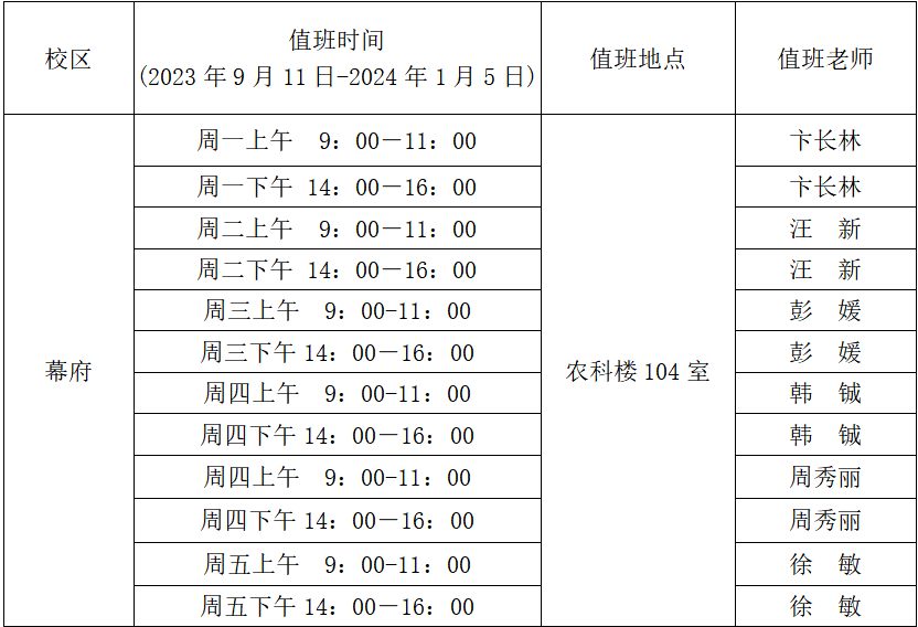 3.心理咨询值班安排(见下表)