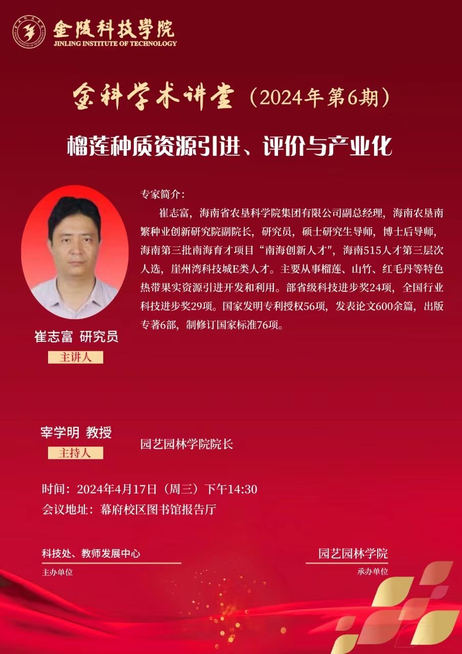 关于举办线下“金科学术讲堂——榴莲种质资源引进、评价与产业化”学术报告的通知