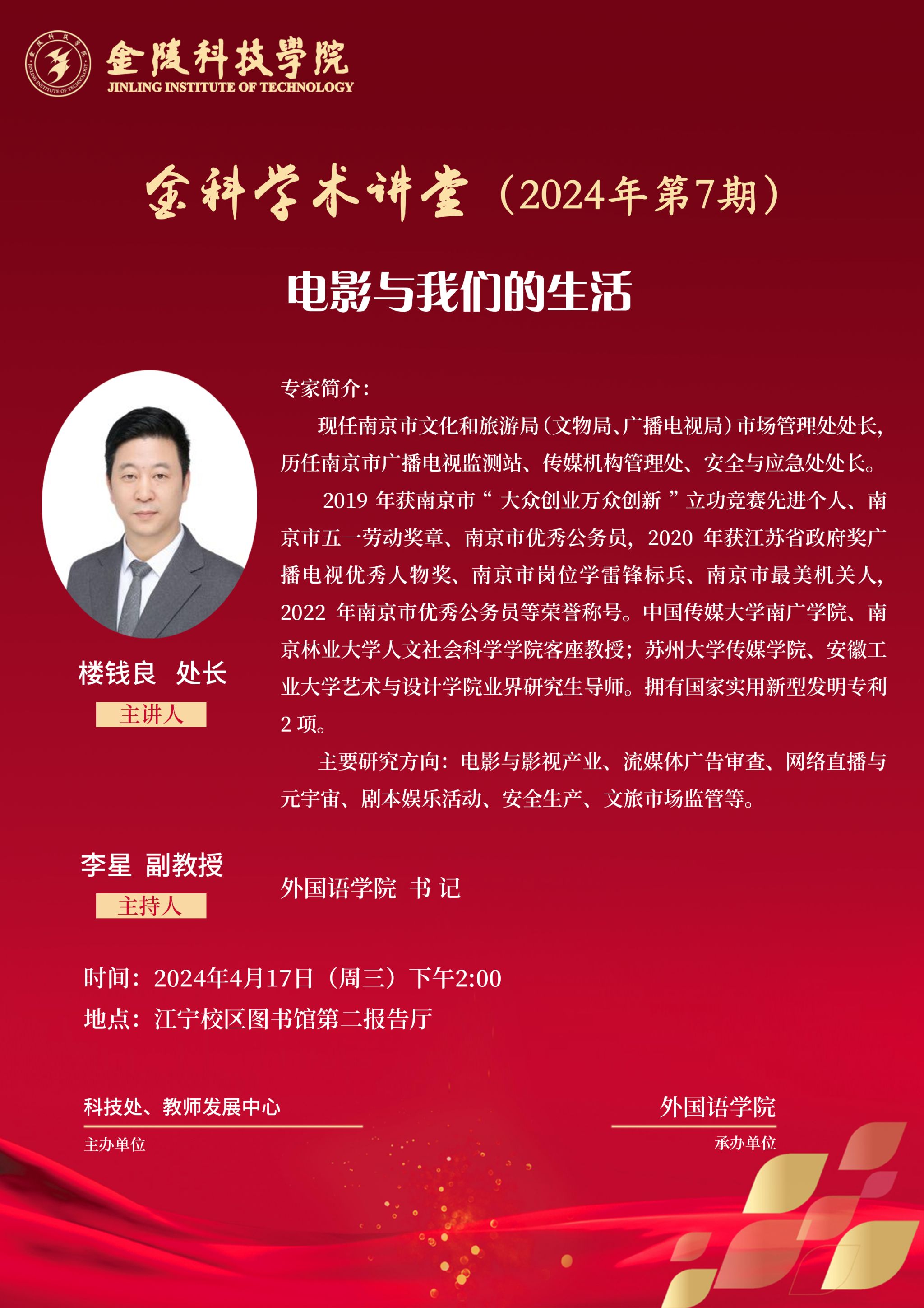 关于举办线下“金科学术讲堂——电影与我们的生活”学术报告的通知