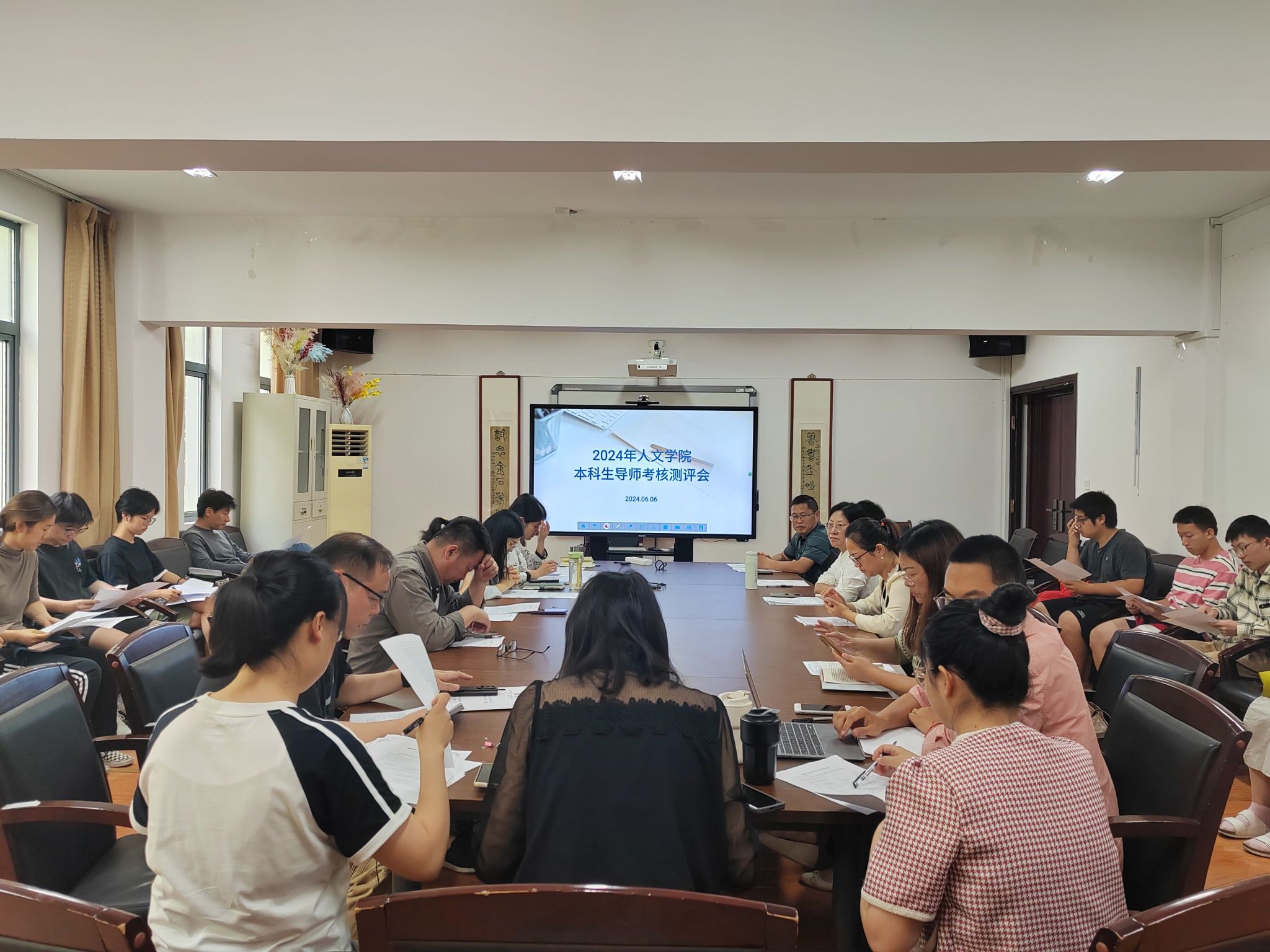 为加强人文学院本科生导师队伍的建设与管理,进一步发挥本科生导师在学风建设中的指导作用,提升人才培养质量,更好地迎接本科教育教学审核评估。6月6日下午,人文学院在幕府校区崇文楼310会议室召开了2023至2024学年本科生导师考核测评会。人文学院副书记董宇、副院长赵步阳,与参加汇报的本科生导师、全体辅导员、各年级学生代表参加了本次测评会。