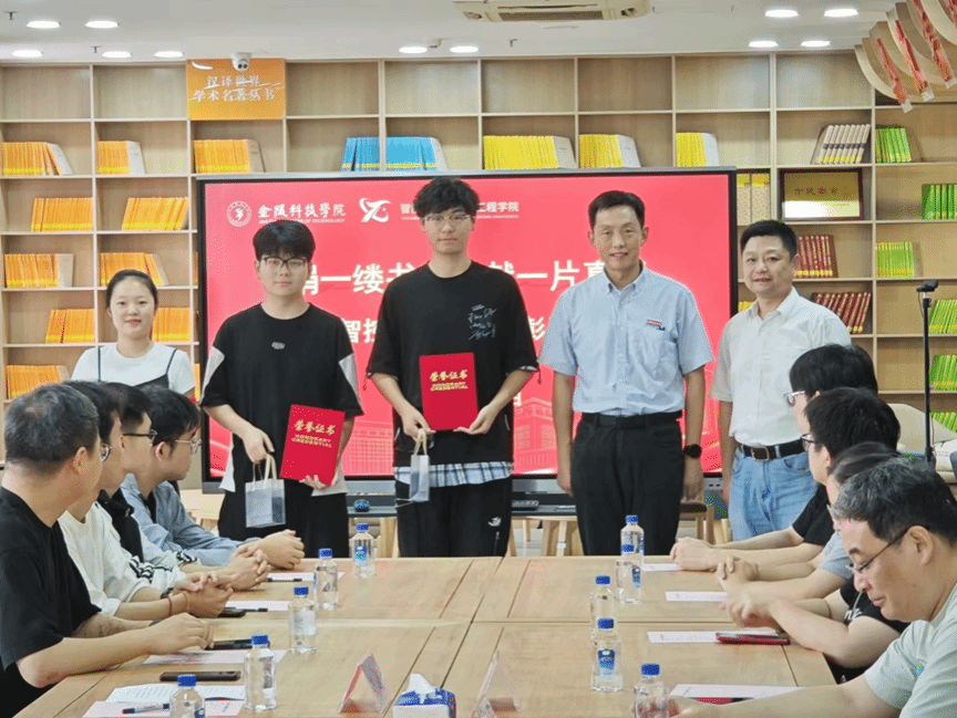 捐赠仪式开始,智控学院毕业生校友代表向图书馆捐赠了一批精选图书,校友周圩颖作发言,回顾了学院近2个月捐书活动的点滴细节,同时表达向学弟学妹传递知识的希望,以及对校园生活的深深眷恋。随后,许晨馆长和涂远书记向学生代表颁发了纪念品及荣誉证书,感谢同学们做出的贡献。最后,涂远书记作总结讲话,指出在同学们即将告别熟悉的校园,踏上新的人生旅程的特殊时刻,学院特别开展了这场意义非凡的捐书活动,积极动员学院全体毕业生捐赠人文类、社科类、理工类等书籍两百余本,让书籍继续在学弟学妹们手中延续,分享知识,传递温暖。感谢同学们对智能科学与控制工程学院校友工作和教育事业的支持,希望同学们乘风破浪,所愿皆圆满。