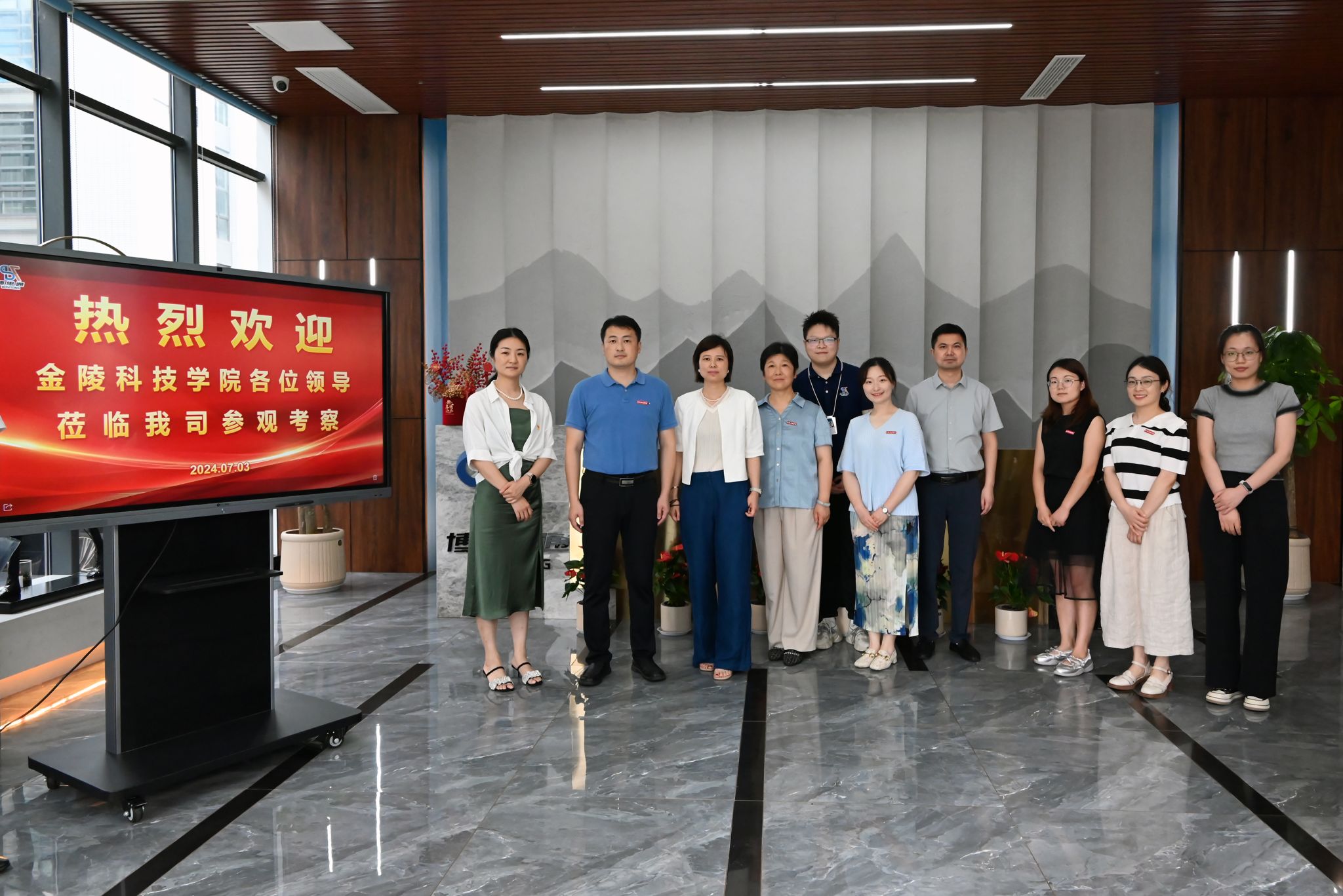 为进一步强化校企合作、产教融合,推动学院专业建设和人才培养, 7 月 3日,材料工程学院党委书记陈健、院长叶原丰、党委副书记韩铖带队前往江苏博思通新材料有限公司进行走访调研,并看望在该企业的毕业生。材料系支部书记李俊琳、2024届毕业班班主任顾伟霞、就业干事华岚芳随同前往。