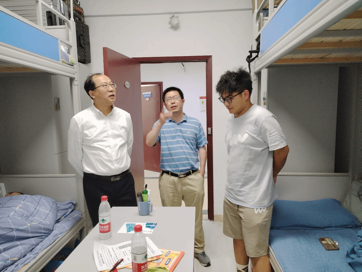 报到当天,学院领导前往迎新工作地点,慰问了参与迎新工作的师生,了解新生报到情况。学院领导鼓励新生们要尽快适应大学的新环境,树立新的奋斗目标,在亲切交谈过程中了解他们的生源地、入学感受和学习计划等情况,向学生们表达了学院全体师生对他们的热烈欢迎。学院领导还走访了新生宿舍,通过交谈了解了他们的住宿环境等情况。