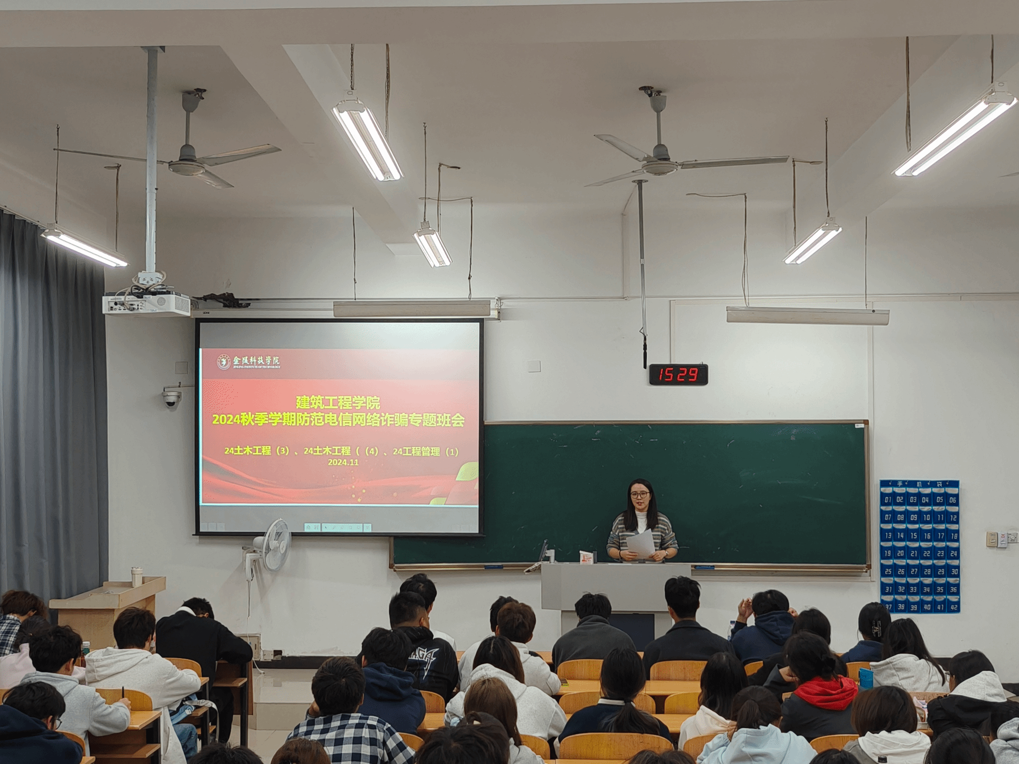 班会上,各班主任强调了学风建设的重要性和紧迫性,带领学生学习《本科教育教学审核评估应知应会(学生版)》,引导学生理解、认同学生是审核评估的最大受益者的理念,切实增强了全体学生对审核评估工作的认知度、理解度和参与度。学习学校文件《beat365正版唯一官网必一学生课堂行为规范》,学院严格按照课堂秩序,进一步明确“五不三带”要求,制定《建筑工程学院学生课堂行为规范检查工作方案》,建立“学院领导--各级教师--督察小组--班级骨干”四级联动督查机制,强化学生良好行为习惯的养成。学习学校文件《beat365正版唯一官网必一考场规则》、《beat365正版唯一官网必一学生违纪处分办法》,强化以管理促学风,开展考风考纪教育,规范考试过程,保证考试质量,杜绝违纪,指导学生签订《大学生文明守纪承诺书》,引导学生将学校的规章制度内化于心、外化于行。学习学校文件《beat365正版唯一官网必一普通全日制本科生学业预警及帮扶管理办法(试行)》,学院教学与学工相联动,辅导员班主任与任课教师相协调与家长相沟通,学生干部参与,依据预警等级、结合学生实际情况制定帮扶计划,助力学生健康成长。班会上,各班级还进行“双十一”防范电信网络诈骗教育。