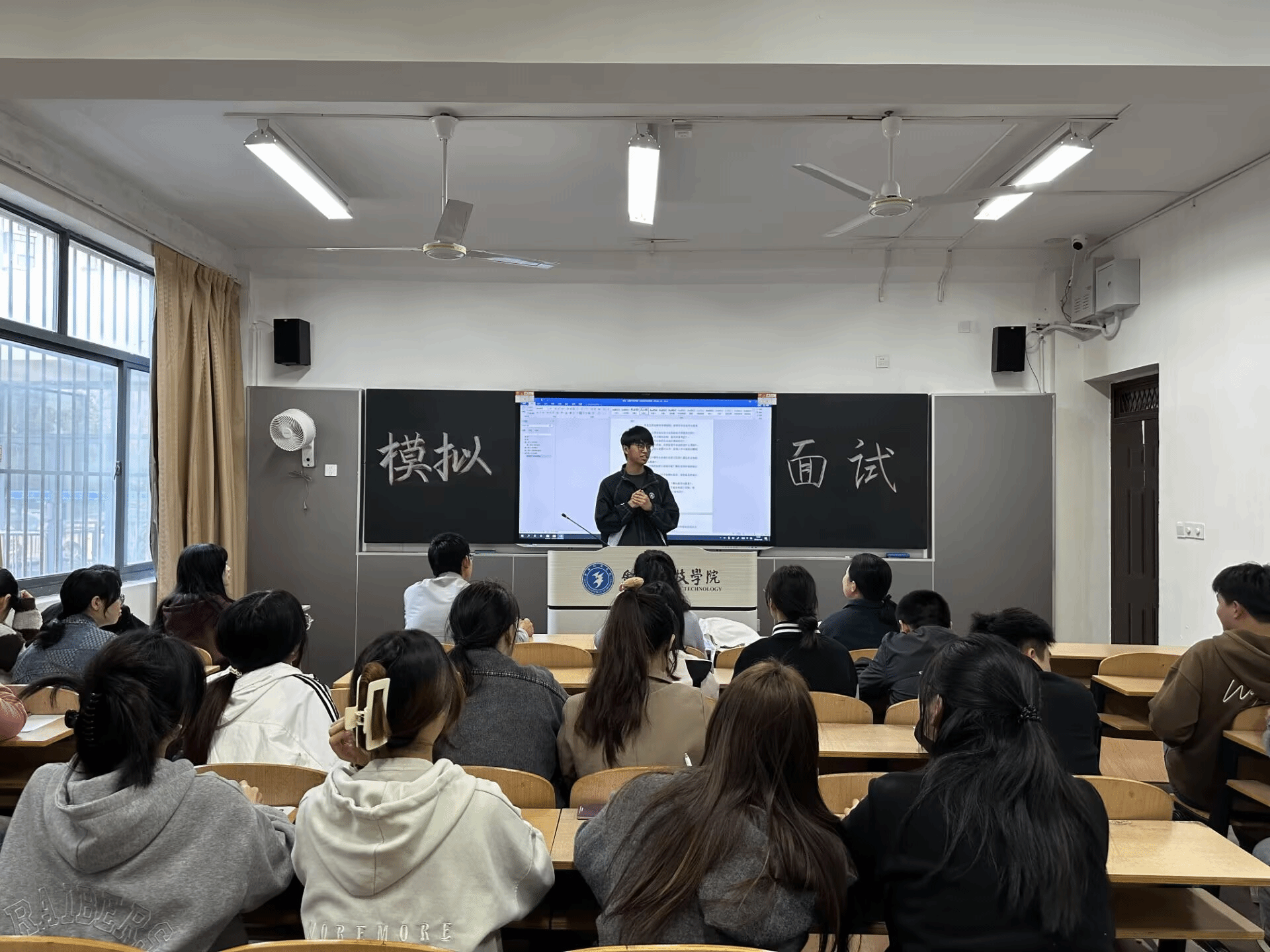 模拟面试以班级为单位进行,严格按照真实的面试流程进行。在陈述环节,同学们从自我介绍、专业技能以及求职意愿方面进行汇报展示。评委们则依据专业的评判标准,对每位同学的职业认知、心理素质、仪表仪态等多个方面进行细致入微的现场指导。