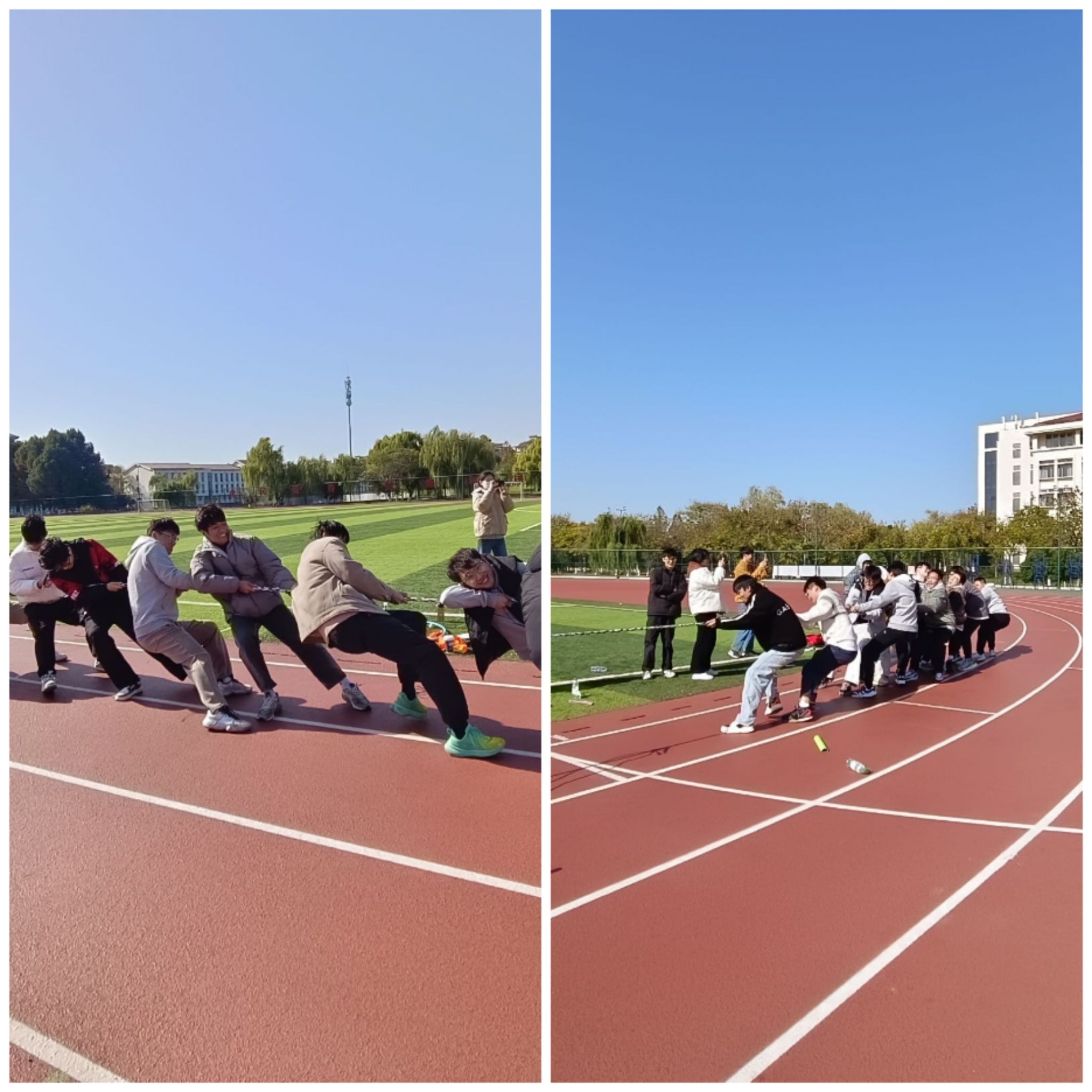 本次趣味运动会设有4×50m接力、球行万里、合力制胜、一圈到底、两人三足以及拔河比赛等趣味性与竞争性并存的项目,充分调动了同学们的热情和积极性。4×50m接力赛上选手们风驰电掣,交接棒配合默契;球行万里中大家共同协作,尽显细心;合力制胜环节各团队齐心协力、稳步前行;一圈到底大家达成共识、趣味十足;两人三足的同学协调一致、快速向前;拔河比赛更是高潮迭起,拼尽全力。经过激烈角逐,各项目优胜团队产生。
