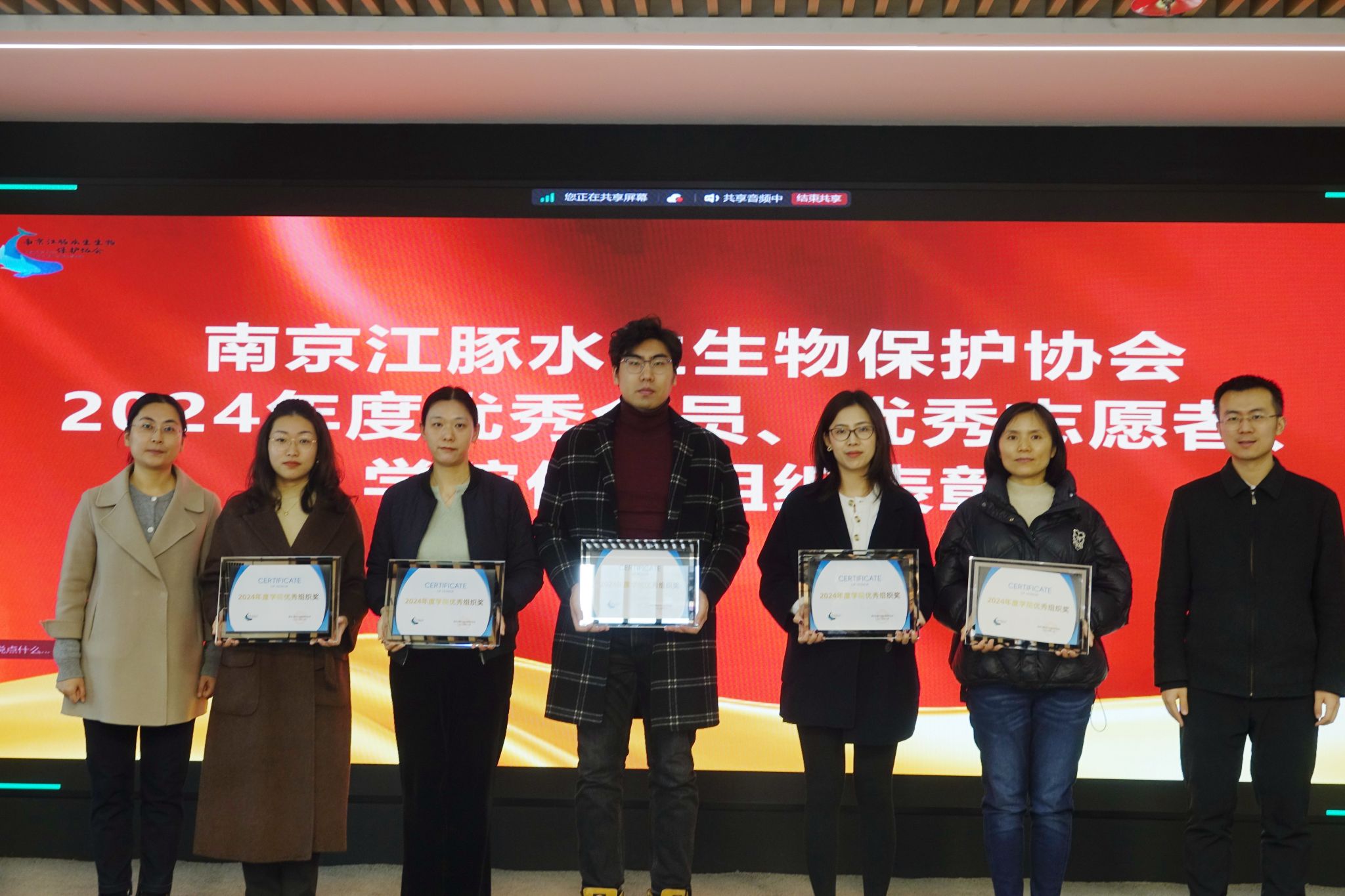 2月28日,南京江豚水生生物保护协会第二届第五次会员代表大会暨水生生物保护与发展专家研讨会在南京长江国际航运中心隆重举行。动科学院师生代表受邀参会,并在大会中荣获“学院优秀组织奖”,学院团总支书记吴旖旎获评“优秀会员”,学院动物保护协会7名同学荣获“优秀志愿者”称号。