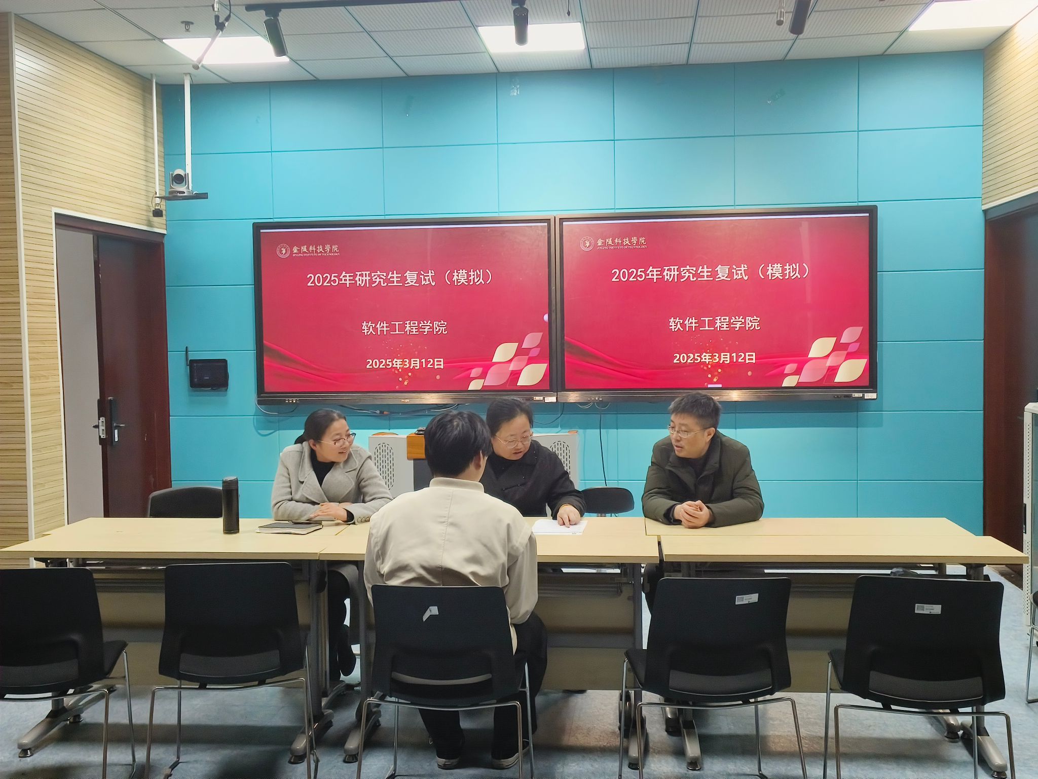 为帮助考研同学了解标准复试流程,缓解面试压力,提升应试能力,3月12日,软件工程学院在科技楼2号楼226会议室举办了2025届毕业生研究生模拟复试活动,本次活动邀请了洪蕾教授、李慧教授和丁展副教授作为指导老师。