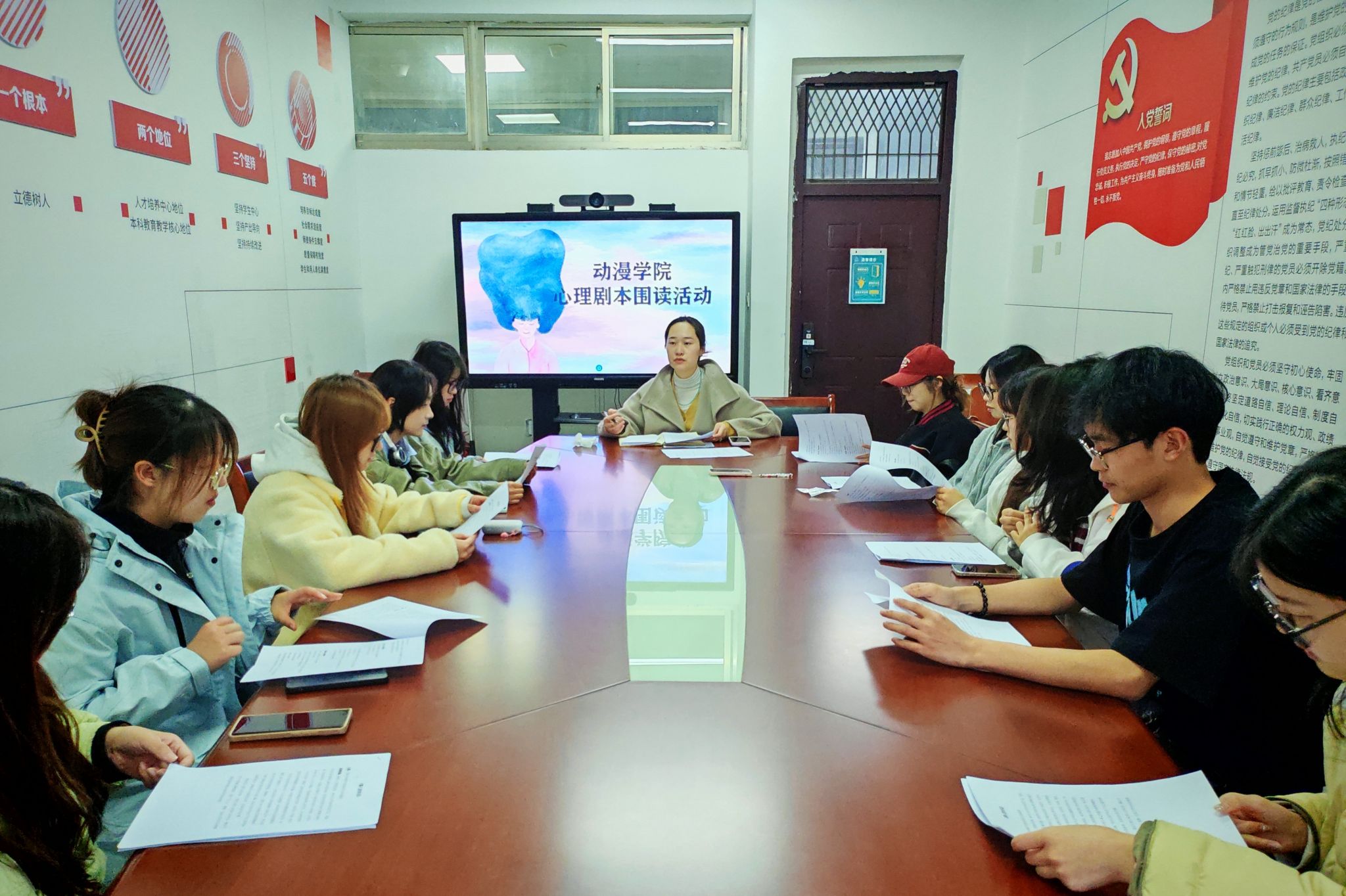 为筹备2025年心理情景剧、心理微电影比赛,动漫学院于4月1日在江宁校区尚学楼举办了心理剧剧本围读活动。心理剧社指导老师王月恒、剧本创作团队以及演员代表参加了本次活动。