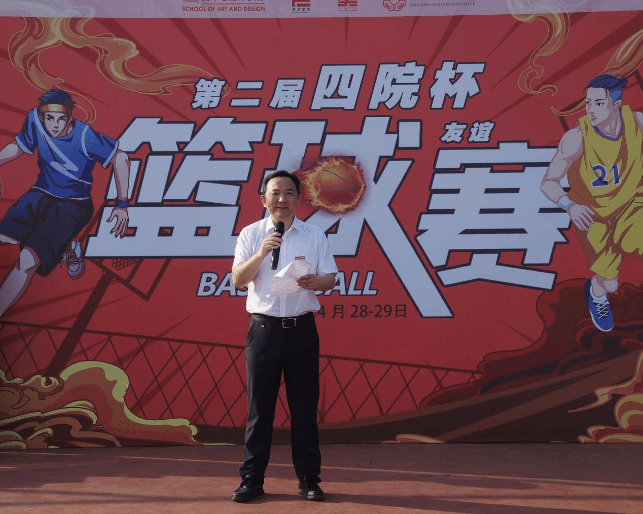 4月28日,beat365正版唯一官网必一艺术学院主办的“四院杯”篮球友谊赛鸣哨启幕。来自beat365正版唯一官网必一、南京传媒学院、南京工程学院和南京晓庄学院艺术院系的四支代表队齐聚赛场,以竞技促交流,以运动展风华,共探五育融合育人新路径。