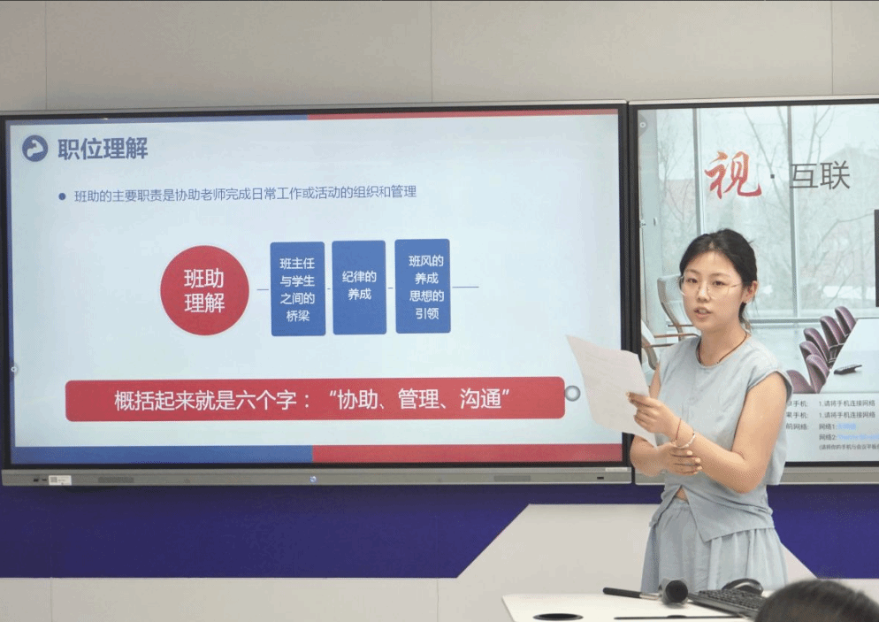 陈婷老师对辅导员助理们的述职和竞聘进行点评并对2025级辅导员助理明确了工作任务,提出了希望。学院将持续加强辅导员助理的培训培养工作,深化辅导员助理的凝聚力、胜任力、工作力,进一步充分发挥辅导员助理的朋辈引航作用。