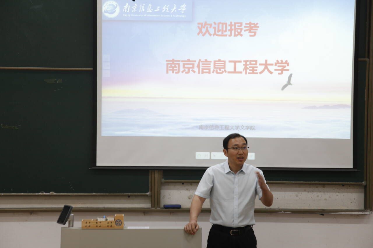 5月29日上午,在幕府校区农科楼113教室,人文学院邀请南京信息工程大学文学院举办了2026年研究生招生宣讲会。人文学院党委副书记董宇、副院长赵步阳,南京信息工程大学文学院党委书记郭雨、中国语言文学专业负责人庞秀慧老师、国际中文教育专业负责人徐开妍老师以及校友贺宁同学出席。院2022级70余名学生参加了宣讲活动。