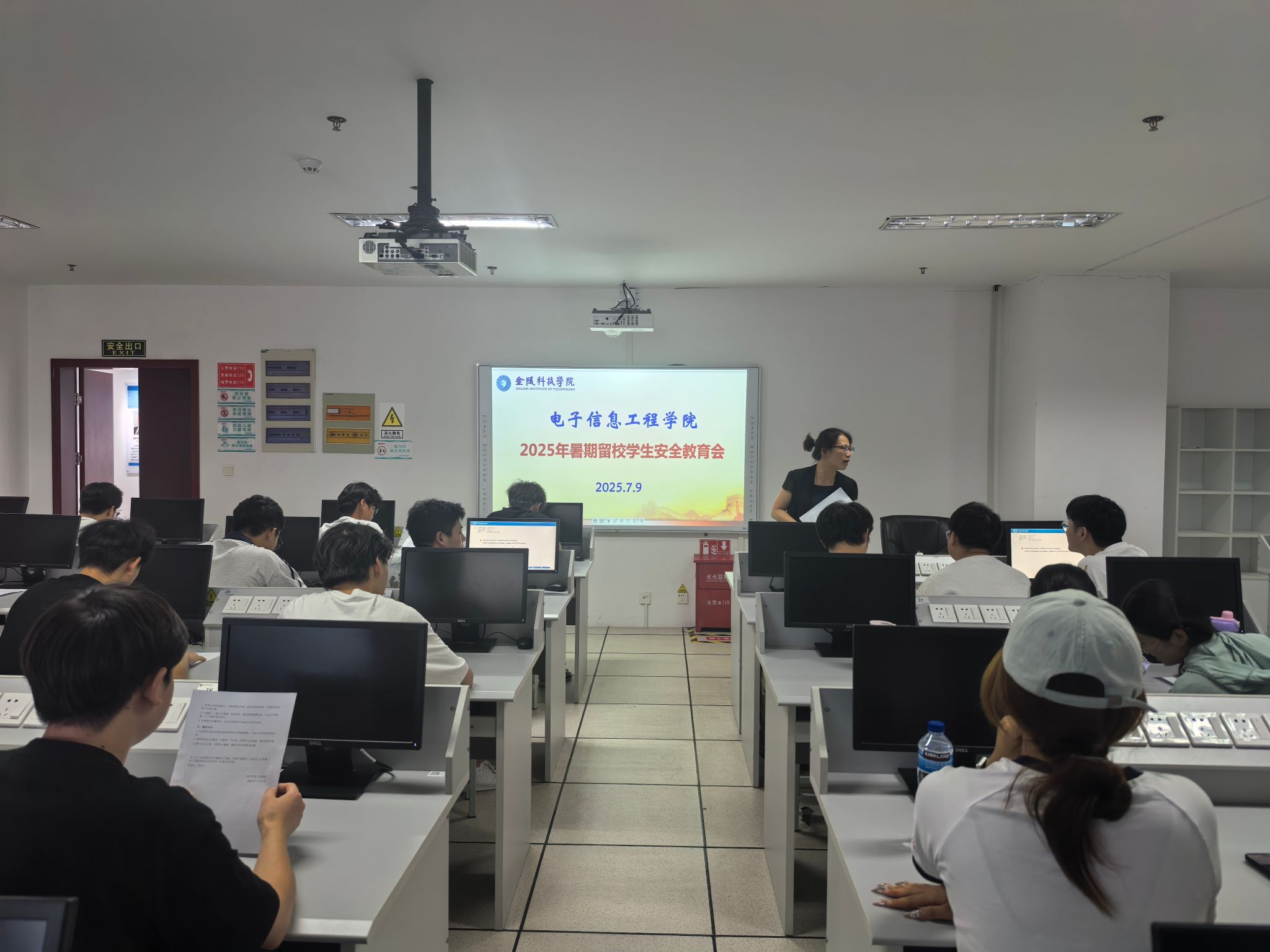 为强化学院暑期留校学生的安全管理,明确学习与生活规范,营造安全、文明、和谐的留校环境,7月9日电子信息工程学院在科技楼4号楼311开展暑期留校学生安全教育专题会议。学院党委书记徐志国、党委副书记陈智慧、辅导员郭晓出席会议,学院申请暑期留校的学生共同参会。
