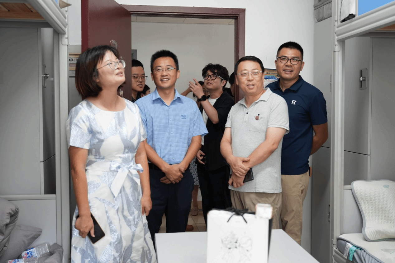 同日下午,院党总支书记叶海青带领全体辅导员、班主任下沉宿舍,通过实地走访宿舍,与新生面对面交流,为新生开启大学征程提供支持。走访过程中,一行人查看宿舍床铺、衣柜等状况,询问新生生活适应情况,告知新生宿舍安全注意事项等。