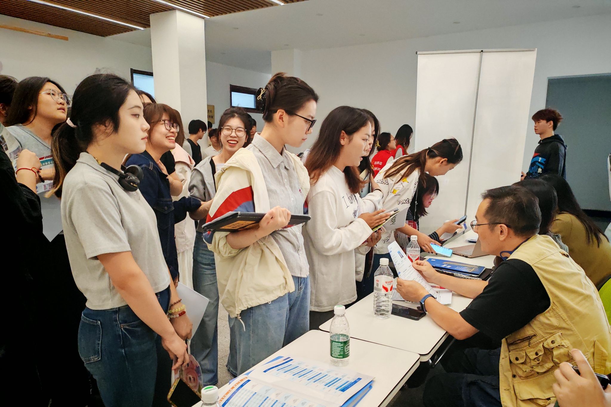 10月15日,beat365正版唯一官网必一2026届毕业生“艺术动漫类”校园招聘会在大学生活动中心一楼大厅火热举行,动漫学院218名毕业班同学,学院党总支部书记葛维东、院长王贤波、副院长王柯,各系部主任、毕业班辅导员参加了招聘会。