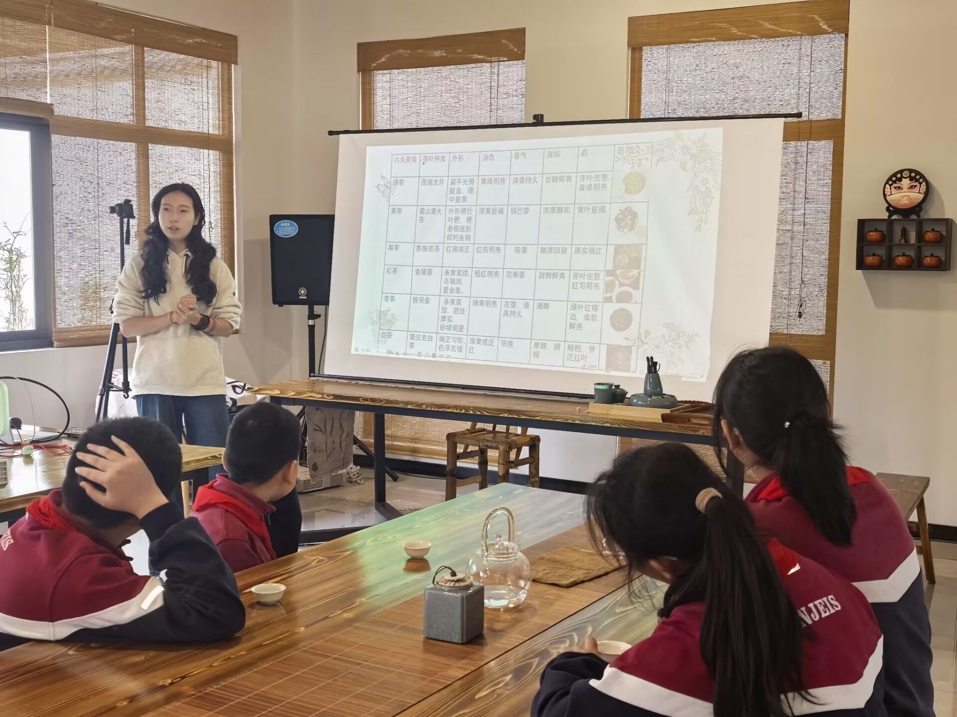 10月20日,园艺园林学院联合南京晓庄实验学校小学部(晓庄校区)打造的“行知茶语”茶文化系列课程迎来第二讲。本次课程以“六大茶类内质深度探秘”为核心主题,通过“旧知回顾—现场冲泡 —沉浸式品鉴”的递进式环节设计,带领孩子们从前期对茶类外观的认知,深入到对茶汤、香气、滋味等内质特征的探索,持续推进中华茶文化启蒙之旅。