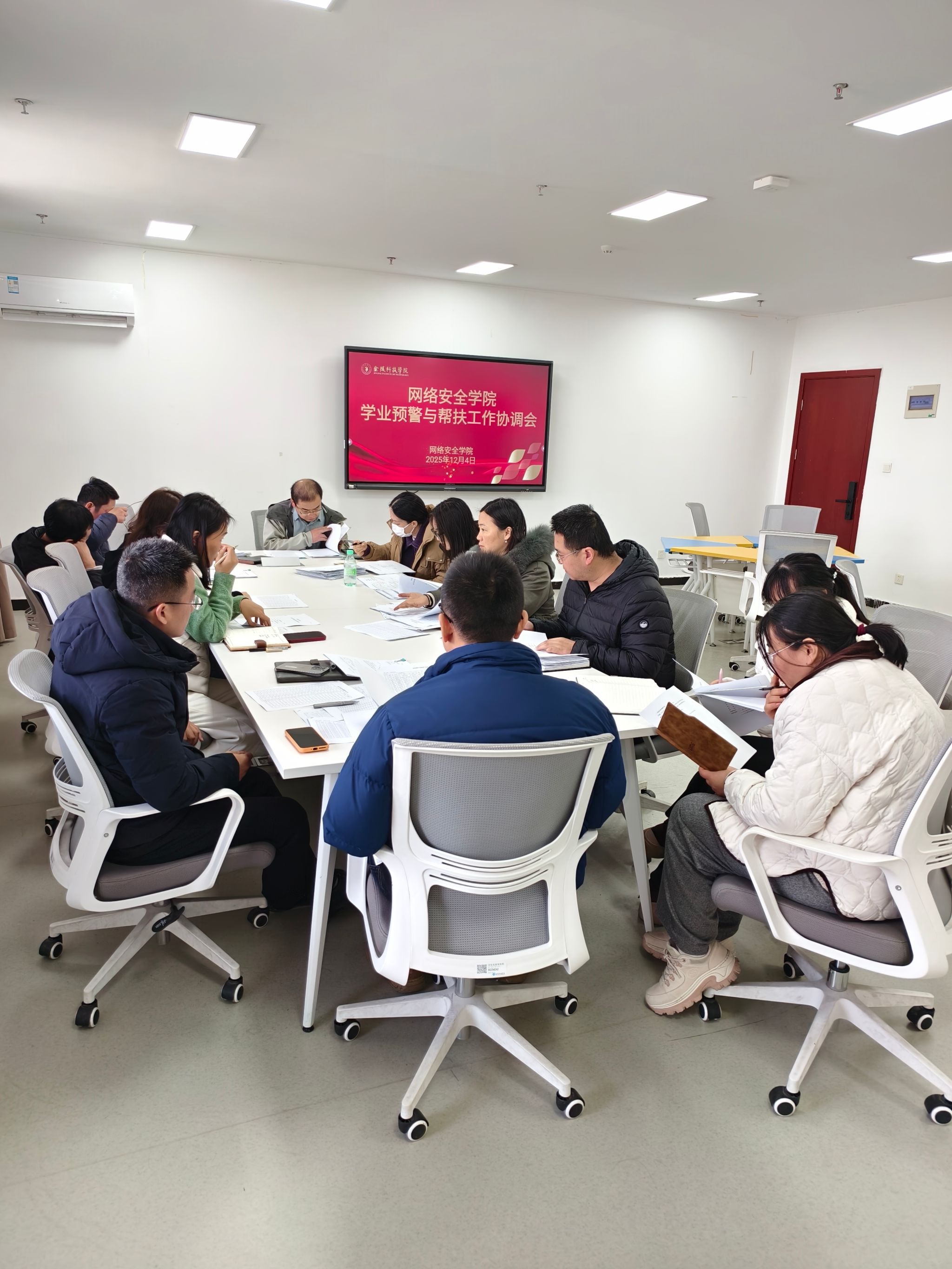 12月4日,网络安全学院召开学业预警和帮扶工作会议,副院长阎浩,教学秘书、全体辅导员、组织员、相关班级班主任和学业导师参加会议。