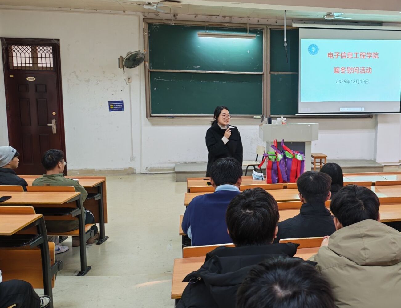 为深入贯彻落实资助育人工作要求,切实将关怀与温暖送到每一位受资助学生心中,12月10日,电子信息工程学院在2302开展暖冬慰问活动。学院党委书记徐志国、党委副书记陈智慧、辅导员郭晓和学院全体受资助学生参与了活动。