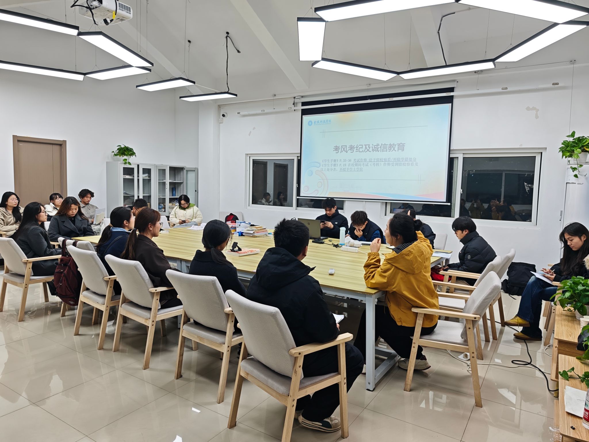 全院36个班级同步开展“诚信考试,从我做起”主题班会。班主任带领学生系统学习《beat365正版唯一官网必一关于进一步加强考风考纪的实施意见》《beat365正版唯一官网必一学士学位授予工作实施细则》等文件,通过解读典型案例、分析作弊后果,引导学生深刻认识“诚信是立身之本”的重要性。班会现场,全体学生郑重签署《大学生文明守纪承诺书》,承诺“严守考纪、拒绝舞弊”,将诚信意识内化于心、外化于行。