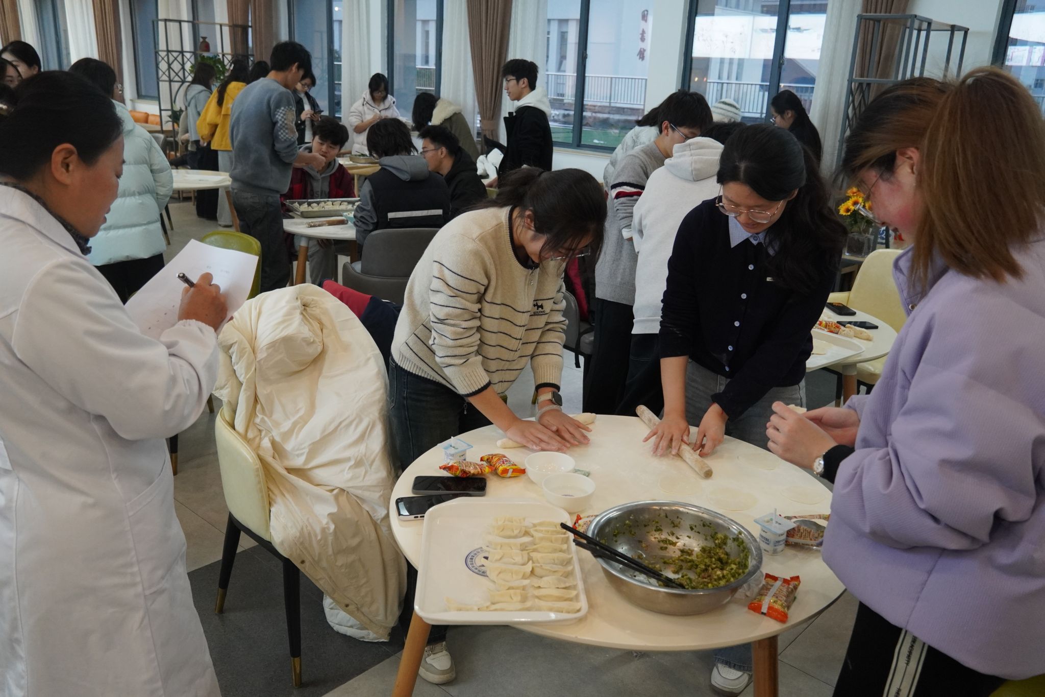 为进一步弘扬中华优秀传统文化,丰富学生校园生活,12月17日下午,人文学院学工办在幕府校区教工餐厅举办了“迎冬至,包饺子”活动。本次活动分趣味游戏和包饺子两个环节,各班级学生代表参加了活动。
