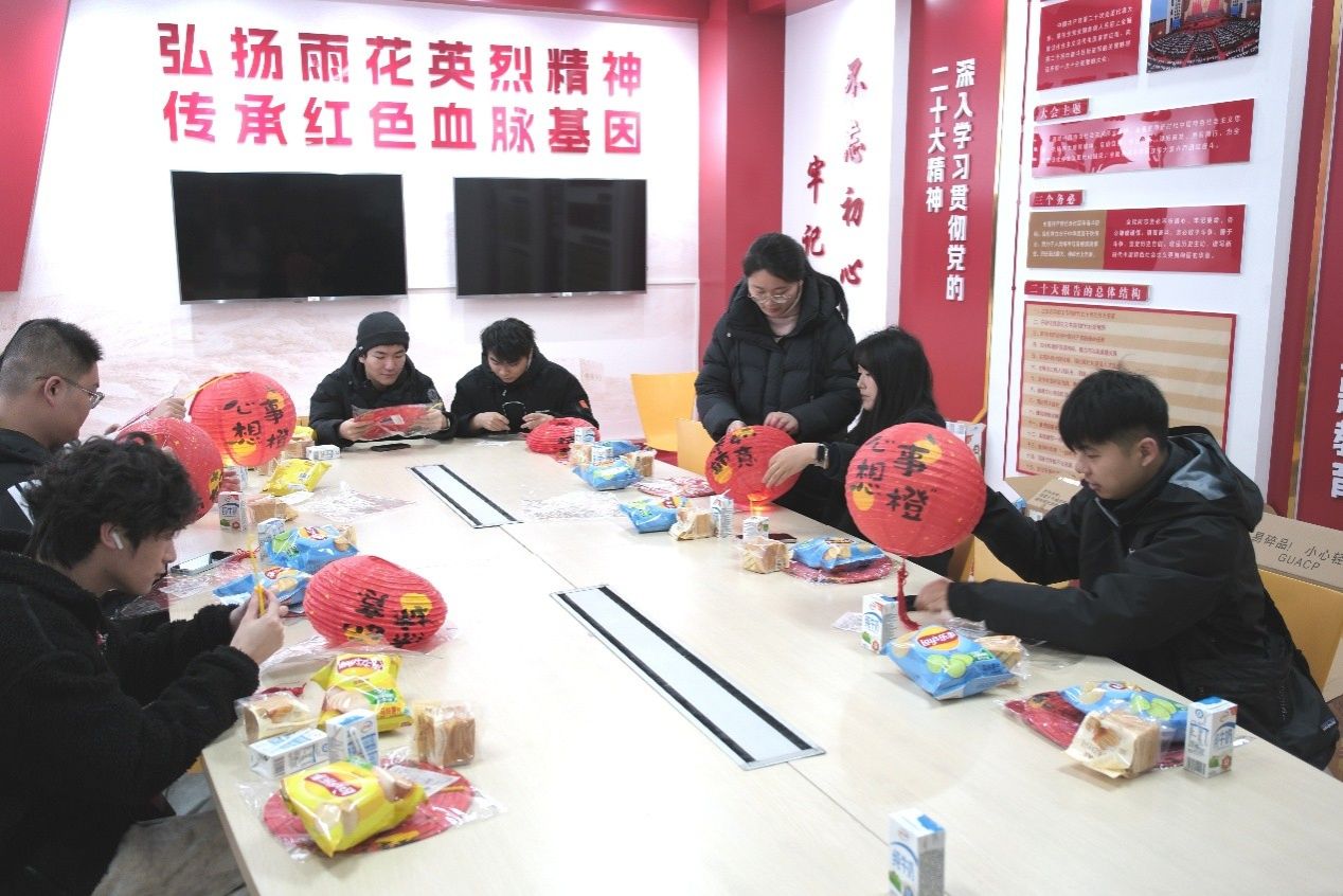 活动设置手工灯笼组装和趣味猜灯谜两项核心环节,兼顾趣味性与文化性。手工灯笼组装环节,同学们领取齐全的材料,或独自钻研,或两两协作,有条不紊地完成拼接、固定,将零散配件变成一盏盏精致花灯。趣味猜灯谜环节,现场悬挂的灯谜通俗易懂、妙趣横生,同学们踊跃思考、相互探讨,参与即可获得小礼品,答对更有惊喜奖励。现场还准备了各类小零食,让大家在参与活动的同时放松身心,充分展现了研究生们的协作意识与青春风貌。