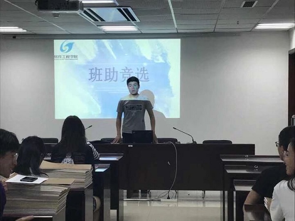 会议伊始,杜文娟老师对辅导员助理的职责范围进行了介绍,强调辅导员助理要关爱新生,承担责任,帮助班主任完成班级的日常管理,并对辅导员助理提出了相关工作要求。随后,李文乔等辅导员助理候选人依次上台进行了自己的个人述职,他们从自身实际,工作经验以及工作规划等方面进行了详细的阐述,表明了各自想做好辅导员助理这个职位的决心。最终,经自愿报名、资格审查、竞聘等环节,选拔出12位优秀学生骨干作为新生辅导员助理。