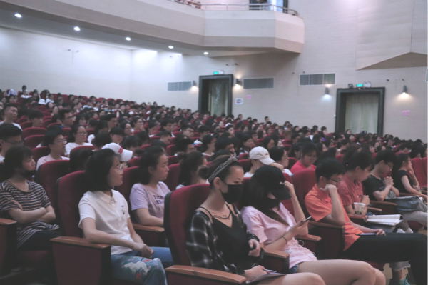 6月5日晚,商学院在大学生活动中心剧场举办职业生涯规划专题讲座,特邀乔布简历机构人才招聘和职业咨询专家张宇松主讲。商学院党总支副书记(主持工作)陆国晓、党总支副书记朱骅、19届年级组长辅导员马丽芳以及19届全体同学参加讲座。