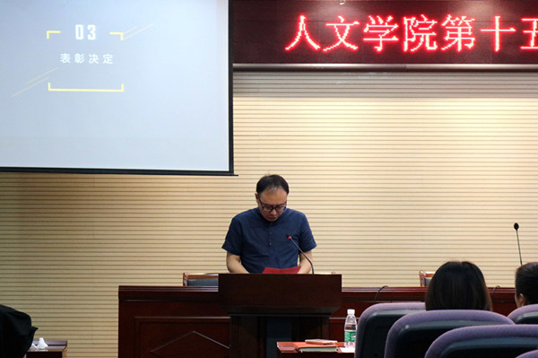 本次科技节闭幕式共有九项议程。开场在主持人的带领下,观看了本届科技节精彩活动视频,创意演示大赛、创意集市、创业名人堂以及各专业相关的技能大赛一一展示,将本届科技节内容丰富、专业性强、形式新颖、参与度高的特点呈现在观众面前。随后,童明明老师就人文学院科技创新工作总结发言,并对我院开展的大学生科技创新工作的基本思路、做法以及取得的成绩进行了汇报。接着,张维亚副院长宣读《人文学院第十五届科技节表彰决定》,并为获奖个人与团体一一颁奖。