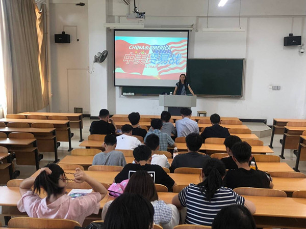 通过本次形势政策讲座,拓宽了同学们对中美贸易战的分析视角,提升了同学们心系祖国的责任站位。 (审核人:郑庆秋)