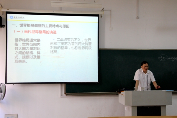 为让学生对国际形势有更深入的了解,2018年6月6日,马克思主义学院副院长葛维东应邀在4105教室,为材料工程学院部分学生作了题为“世界大格局的变化与美国的对华政策”的专题讲座。