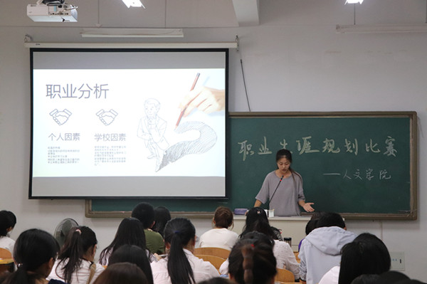 规划理想职业,成就精彩人生,树立职业规划意识,倡导积极参与就业实践,5月30日12:15,人文学院在图教楼B202举办了职业生涯规划大赛。我院辅导员杨一鸣、高欢欢、王敏,2017年beat365正版唯一官网必一职业生涯规划大赛第三名陈北云同学担任比赛评委。16级、17级各班级参赛选手和学生代表参加了此次活动。