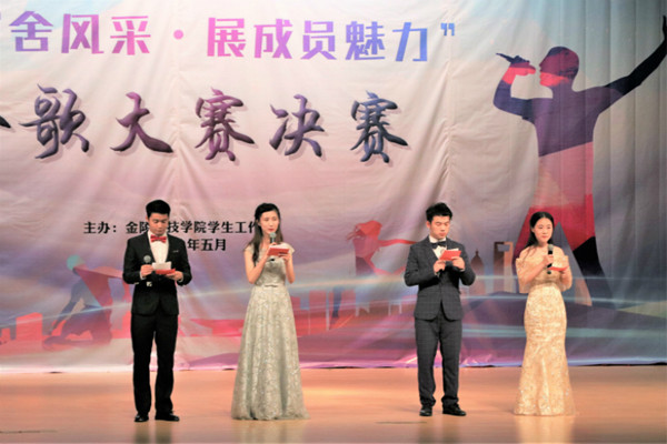 5月25日晚,校第十届学生宿舍文化艺术节“秀宿舍风采·展成员魅力”舍歌大赛决赛在江宁校区大学生活动中心举行。本次决赛由校党委学生工作部周骏部长、学生宿舍管理科孙洁老师、心理健康教育中心刘畅老师、学生资助中心曹轶蕾老师、国防教育科李媛媛老师担任评委。来自各二级学院的14支队伍经过初赛的选拔晋级决赛,郑臣、简宇博、胡西塔尔、王志成四名同学代表商学院参加比赛。商学院17市场营销2班韶正午、17会计2班王海涛、孙影、陈阳等四名同学担任主持人。